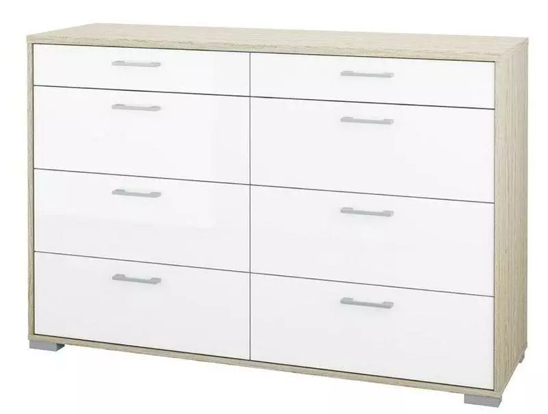 Aada lipasto on tilava ja ulkomuodoltaan erittäin hyvännäköinen lipasto, nyt edullisesti kotiinkuljetettuna! Aada lipasto on erittäin tilava 8-laatikkoinen lipasto, jossa ylimpänä on matalat laatikot ja niiden alapuolella kolme korkeampaa laatikkoa kummallakin puolella. Aada lipastossa yhdistyy selkeä ja kauniin pelkistetty muotoilu nykyaikaiseen korkeakiiltovalkoisen ja duntetammen yhdistelmään. Runko on duntetammen värinen ja laatikon edustat ovat kauniin kiiltävän valkoiset. Ulkonäkönsä vuoksi Aada lipasto sopii yhteen useiden muiden huonekalujen kanssa ja siinä riittää säilytystilaa isommallekin tavaramäärälle verrattuna moniin muihin lipastoihin. Tekniset tiedot: Värinä: runko duntetammea laatikon edustat kiiltovalkoiset 8-laatikkoinen lipasto Ylimpänä matala laatikko ja kolme korkeampaa laatikkoa kummallakin puolella Laatikoissa laadukkaat metalliset liukukiskot Mittojensa puolesta sopii hyvin sijoitettavaksi muiden Aada lipastojen ja kaappien viereen. Toimitetaan osina Lipaston mitat: Lipaston mitat: leveys: 138 cm, syvyys 43 cm ja korkeus 92 cm