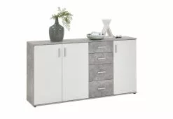 Suuressa Albi 3 senkissä on miellyttävän paljon käytännöllistä säilytystilaa! Albi senkki on käytännöllisen suurikokoinen senkki, josta löytyy reilusti säilytystilaa. Kaappien lisäksi senkistä löytyy neljä metallikiskoilla olevaa laatikkoa. Albi senkin runko ja laatikoiden edustat ovat harmaan väriset ja kuvioitu ikään kuin betonin näköiseksi, mikä antaa senkille tyylikkään rosoisen ulkonäön valkoisen kaapin ovien tuodessa samalla sopivasti raikkautta senkkiin. Vetiminä Albi senkissä on tyylikkään kapeat ja ohuet hopeanväriset vetimet. Suoraviivaisuutensa ja väriensä vuoksi Albi senkki on helposti yhdisteltävissä monenlaisiin sisustuksiin. Tilaa nyt Albi senkki todella edulliseen hintaan verkkokaupastamme! Tekniset tiedot: Väri: Betoni/valkoinen Kapeat hopean väriset vetimet Laatikoissa laadukkaat metallikiskot Valmistettu kalustelevystä Toimitetaan osina Senkin mitat: Senkin mitat: leveys: 160 cm, syvyys 35 cm ja korkeus 83 cm Albi senkin kasausohje