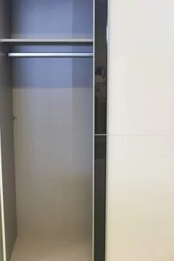 Tyylikäs Avenue vaatekaappi liukuovilla on erittäin laadukas! Avenue vaatekaappi on rungoltaan ja oviltaan valkoisen värinen, mutta kummankin liukuoven ulkoreunassa on kuitenkin kaunis mustaa lasia oleva reunus. Tyylikkään ulkomuotonsa lisäksi komero on myös erittäin laadukas, sillä liukuovikomeron ovet liukuvat laakeroidun yläpyörästön varassa, jolloin vaatekaapin ovet liikkuvat todella vaivattomasti ja kevyesti. Vaatekaapissa on runsaasti säilytystilaa, johon on helppo kätkeä vaatteet ym. tavarat siististi piiloon. Komeron sisällä on kummallakin puolella vaatetanko, jonka yläpuolella on säilytyshylly. Komeroon on kuitenkin mahdollista asentaa tarvittaessa myös lisähyllyjä. Tekniset tiedot: Vaatekaapin väri: valkoinen, mustilla koristereunoilla Komeron liukuovet liikkuvat laakeroidun yläpyörästönsä varassa, jonka vuoksi vaatekaapin ovien käyttö on vaivatonta! Sisällä kummallakin puolella vaatetanko ja ylähylly Valmistettu kalustelevystä Valmistettu Saksassa Toimitetaan osina paketissa Helppo kasata suoraan pystyasentoon Vaatekaapin kapealle puolelle sopii valikoimamme kapea lisähylly ja leveälle puolelle leveä lisähylly Vaatekaapin mitat: Leveys 135 cm, syvyys 65 cm ja korkeus 197 cm