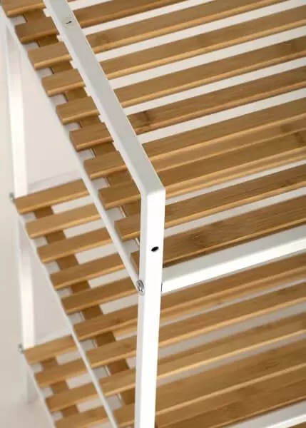 Bambu hyllykössä yhdistyvät kauniit valkoisen ja bambun värit! Bambu hyllykkö on erittäin monikäyttöinen valinta hyllyköksi, sillä sitä voi säilyttää niin olohuoneessa, keittiössä, makuuhuoneessa kuin eteisessäkin. Hyllyille voi asetella kodin tavaroita tai vaikkapa kenkiä. Bambu hyllykkö sopii erittäin hyvin kodin sisustukseen, sillä siinä on siro ja valkoinen metallinen runko sekä puunväriset bambusta valmistetut hyllyt. Kevyen ja siron rakenteensa ansiosta hyllykköä on helppo siirrellä paikasta toiseen. Trendikäs bambuinen hyllykkö tuo myös mukavasti kontrastia muuten tummaan sisustukseen, mutta se sopii hienosti vaalean sisustuksenkin jatkeeksi. Tilaa kaunis ja kolmehyllyinen Bambu hyllykkö verkkokaupastamme edulliseen hintaan ja nopealla toimituksella! Tekniset tiedot: Väri: valkoinen/luonnonväri Metallinen runko Luonnonväriset bambusta valmistetut ritilähyllyt Kolme hyllyä Toimitetaan osina! Hyllykön mitat: Leveys 39 cm, syvyys 32,5 cm ja korkeus 71 cm