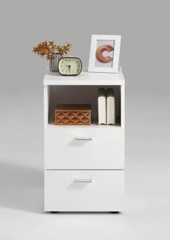 Valkoinen Colima yöpöytä sopii kokonsa ansiosta pienempäänkin makuuhuoneeseen! Kauniin valkoinen Colima yöpöytä on tyylikkään suoraviivaisesti muotoiltu, ja siinä on kahden laatikollisen sekä avohyllyn verran säilytystilaa. Colima yöpöytä on valmistettu kauniin valkoisesta kalustelevystä ja yöpöydän laatikoissa on metallikiskot, joiden avulla yöpöydän laatikot liukuvat vaivattomasti. Colima yöpöytä sopii hyvin kotiin tuomaan lisää säilytystilaa. Tilaa edullinen Colima yöpöytä nyt verkkokaupastamme! Tekniset tiedot: Väri: valkoinen Materiaali: kalustelevy Yöpöydässä kaksi laatikkoa Laatikoissa metallikiskot Vetimet muovia Toimitetaan osina Valmistettu Saksassa Yöpöydän mitat: Leveys 35 cm, syvyys 40 cm ja korkeus 61,5 cm Colima 1 yöpyödän kasausohje