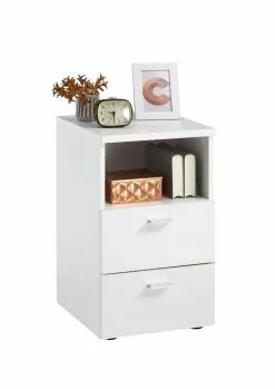 Valkoinen Colima yöpöytä sopii kokonsa ansiosta pienempäänkin makuuhuoneeseen! Kauniin valkoinen Colima yöpöytä on tyylikkään suoraviivaisesti muotoiltu, ja siinä on kahden laatikollisen sekä avohyllyn verran säilytystilaa. Colima yöpöytä on valmistettu kauniin valkoisesta kalustelevystä ja yöpöydän laatikoissa on metallikiskot, joiden avulla yöpöydän laatikot liukuvat vaivattomasti. Colima yöpöytä sopii hyvin kotiin tuomaan lisää säilytystilaa. Tilaa edullinen Colima yöpöytä nyt verkkokaupastamme! Tekniset tiedot: Väri: valkoinen Materiaali: kalustelevy Yöpöydässä kaksi laatikkoa Laatikoissa metallikiskot Vetimet muovia Toimitetaan osina Valmistettu Saksassa Yöpöydän mitat: Leveys 35 cm, syvyys 40 cm ja korkeus 61,5 cm Colima 1 yöpyödän kasausohje
