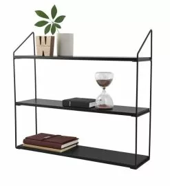 Tyylikääseen Day seinähyllyyn saat esineet kauniisti esille kolmelle eri tasolle! Yksinkertaisen tyylikkääseen Day seinähyllyyn saat kotisi tavarat ja koriste-esineet kauniisti esille. Musta metallirunko ja suoraviivainen muotoilu tekevät Day seinähyllystä helposti moniin sisustuksiin yhdistettävän kokonaisuuden. Day seinähylly sopii niin työpisteiden lähelle pientavaroiden säilytystä varten, keittiöön maustehyllyksi tai vaikkapa eteiseen avaimien ja muiden pienten tavaroiden säilyttämiseen! Day seinähylly on siis todella monikäyttöinen hylly, jonka sijoituspaikkaa kotona voit vaihtaa aina tarpeen mukaan. Day seinähyllystä löytyy muitakin värivaihtoehtoja. Tilaa Day seinähylly nyt edulliseen hintaan verkkokaupastamme, ja me toimitamme sen lähimpään postiisi jopa parissa päivässä! Tekniset tiedot: Väri: musta Runko metallia ja hyllyt mdf-levyä Runko puuterimaalattu Ruuvit seinään kiinnittämistä varten eivät kuulu pakettiin! Seinähyllyn mitat: Seinähyllyn mitat: leveys 60 cm, syvyys 15 cm ja korkeus 54 cm
