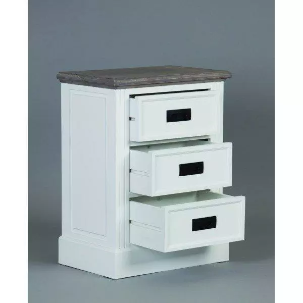 Kauniista Elisabeth sarjasta on saatavana useita eri huonekaluja, kuten esimerkiksi lipastoja senkkejä ja tv-tasoja! Kooltaan sopivan pieni Elisabeth lipasto on hyvin monikäyttöinen, sillä se sopii lipastoksi moniin huoneisiin, mutta myös yöpöydäksi sängyn viereen! Elisabeth lipaston runko on kokonaan valkoinen ja sen kansi on petsattu eläväisen harmaaksi, joten lipasto sopii mainiosti skandinaaviseen sisustukseen. Elisabeth sarjan huonekalut toimitetaan valmiiksi kasattuina, joten ne voi ottaa käyttöön nopeasti ja vaivattomasti! Tilaa nyt Elisabeth lipasto verkkokaupastamme ja kotiinkuljetamme sen ulko-ovellesi erittäin edulliseen hintaan! Tekniset tiedot: Valkoinen runko ja harmaa eläväpintainen petsattu kansi Kolme laatikkoa Laatikoissa perinteiset puu/vanerikiskot Musta vedin Valmistettu mdf-levystä. Kansi puuviilua, kannen reunoissa puulistat Toimitetaan kasattuna! Lipaston mitat: Leveys 53 cm, syvyys 35 cm ja korkeus 70,5 cm