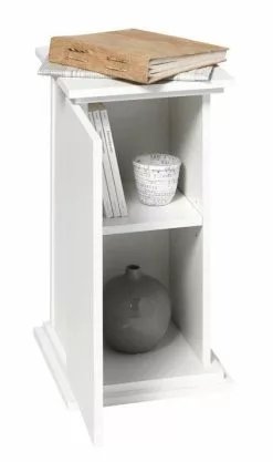 Essex kaappi on erittäin monikäyttöinen ja sirokokoinen kaappi! Essex kaappi on kooltaan mukavan pieni ja sen vuoksi se sopii pieniinkin tiloihin. Kokovalkoinen kaappi näyttää kiinni ollessaan siistiltä sisustuspylväältä, mutta sen sisällä on helppo säilyttää kodin pikkutavaroita piilossa. Essex kaappi sopii mainiosti myös pikkupöydäksi esimerkiksi sohvan viereen tai yhden kukan kukkapöydäksi. Essex kaappi on valmistettu melamiinipintaisesta kalustelevystä. Voit nyt tilata edullisen Essex kaapin verkkokaupastamme ja toimitamme sen edullisesti lähimpään postiisi. Tekniset tiedot: Väri: valkoinen Valmistettu melamiinipintaisesta kalustelevystä Kaapissa yksi hylly Somisteet eivät sisälly hintaan Toimitetaan osina Kaapin mitat: Leveys 30 cm, syvyys 30 cm ja korkeus 58 cm Essex 1 kaapin kasausohje