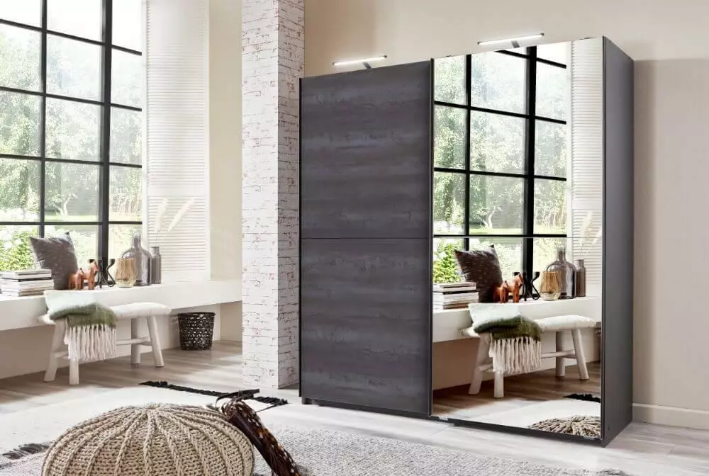 Näyttävä peiliovellinen Herne vaatekaappi liukuovilla nyt edullisesti verkkokaupastamme ja myymälästämme – kotiinkuljetus alkaen 0 €! Herne vaatekaapilla tuot kaunista kontrastia ja näyttävyyttä kotisi sisustukseen. Herne vaatekaapin runko on tumma, ja sen ovessa on kaunis tumma betonimainen kuvointi, joka toimii vaatekaapissa uniikkina yksityisohtana. Toisessa ovessa on reilun kokoinen peili, jonka ansiosta tämä liukuovellinen vaatekaappi on erinomainen vaihtoehto niin eteistiloihin kuin makuuhuoneisiinkin. Herne vaatekaapin liukuovet liukuvat vaivattomasti laadukkailla ja kestävillä laakeroiduilla yläpyörästöillä, joiden ansiosta komeron käyttäminen on vaivatonta ja helppoa, vaikka vaatekapin ovia tulisi aukaista useita kertoja päivässä. Komeron sisällä on kummallakin puolella vaatetanko, jonka yläpuolella on säilytyshylly. Komeroon on kuitenkin mahdollista asentaa tarvittaessa myös lisähyllyjä. Tilaa nyt siis laadukas ja näyttävä Herne liukuovellinen vaatekaappi edulliseen tarjoushintaan verkkokaupastamme, ja kotiinkuljetamme sen jopa parissa päivässä. Tekniset tiedot: Vaatekaapin väri: antrasiitti Komeron liukuovet liikkuvat laakeroidun yläpyörästönsä varassa, jonka vuoksi vaatekaapin ovien käyttö on vaivatonta! Sisällä kummallakin puolella vaatetanko ja ylähylly Valmistettu kalustelevystä Valmistettu Saksassa Toimitetaan osina paketissa Helppo kasata suoraan pystyasentoon Miljöökuvassa näkyvät valaisimet eivät sisälly hintaan! Vaatekaapin mitat: Vaatekaapin mitat: leveys 180 cm, syvyys 65 cm ja korkeus 198 cm Peilin mitat: leveys 88 cm ja korkeus 195 cm