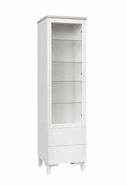 Anton vitriinin ovet ja laatikot toimivat ponnahdusmekanismilla! Hiipakan valmistama Anton vitriini on näyttävän näköinen ja kokoinen vitriini. Väri on klassisen kaunis ja jokaiseen kotiin sopiva valkoinen. Vitriinin lasit ovat kirkasta lasia, jolloin vitriinissä olevat esineet pääsevät kauniisti näkyville. Tuotteen runko ja edustat ovat aina valkoiset, mutta yläkannen väri on valittavissa valkoisen, saarnin, hunaja tammen, kauran sekä hopea jalavan välillä. Anton vitriinin ovet sekä laatikot toimivat ponnahdusmekanismilla, joten voit vain painaa kevyesti laatikon edustaa aukaistaksesi ne. Vitriinin ovissa ja laatikoissa on myös todella käytännölliset hidastusmekanismit, joten pienimmätkään lapset eivät satuta sormiaan laatikoita sulkiessaan. Anton vitriini on nyt saatavana verkkokaupastamme edulliseen hintaan! Tekniset tiedot: Värivaihtoehdot: valkoinen, valkoinen/hunaja tammi, valkoinen/kaura, valkoinen/hopea jalava Vitriinin lasit kirkasta lasia Laatikot ja ovet toimivat kätevällä ponnahdusmekanismilla Ponnahdusmekanismilla olevat laatikot aukeavat laatikon reunaa kevyesti painamalla Laatikoissa metalliset mikroliukukiskot Tuotteen runko MFC-levyä, laatikkojen ja ovien etusarjat maalattua MDF-levyä Voit valita vitriinin sokkelilla tai korkeilla puujaloilla Tuotteen kaksipuolinen taustalevy on valkoinen myös tuotteen takapuolella Lisävarusteena voit tilata LED- valaisimen Toimitetaan valmiiksi koottuna, jalat kiinnitettävä vitriiniin Kotimainen Vitriini saatavilla myös puuhyllyillä varustettuna. Mikäli kaappiin halutaan puuhyllyt, ilmoita tieto tilauksen kommenttiosiossa. Vitriinin mitat: Vitriinin mitat: leveys 50 cm, syvyys 49 cm ja korkeus sokkelilla 185 cm ja puujaloilla 193 cm Laatu: Hiipakan Pohjanmaalla valmistamat huonekalut ovat todella laadukkaita ja kestäviä. Materiaalit ovat hyviä ja tuotteet vankkoja ja tukevia. Laatikoiden ponnahdus- ja hidastusmekanismit ovat käteviä ja toimivia. Anton jalkasarjan kiinnitysohje