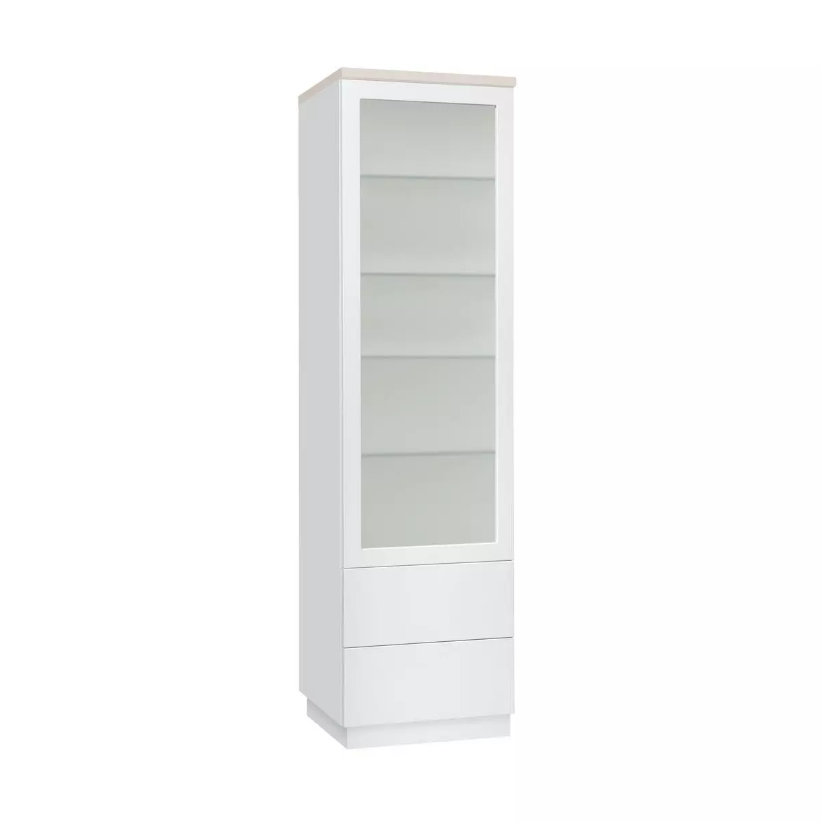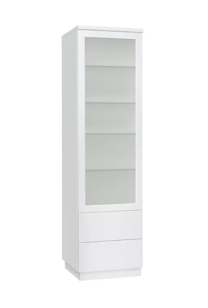 Anton vitriinissä on kaunis maitolasinen ovi ja kaksi laatikkoa! Hiipakan valmistama Anton vitriini on näyttävän näköinen ja kokoinen vitriini. Väri on klassisen kaunis ja jokaiseen kotiin sopiva valkoinen. Vitriinin lasit ovat maitolasia, jolloin vitriinissä olevat esineet pääsevät hieman näkyville, mutta samaan aikaan myös piiloon. Tuotteen runko ja edustat ovat aina valkoiset, mutta yläkannen väri on valittavissa valkoisen,hunaja tammen, kauran sekä hopea jalavan välillä. Anton vitriinin ovet sekä laatikot toimivat ponnahdusmekanismilla, joten voit vain painaa kevyesti laatikon edustaa aukaistaksesi ne. Vitriinin ovissa ja laatikoissa on myös todella käytännölliset hidastusmekanismit, joten pienimmätkään lapset eivät satuta sormiaan laatikoita sulkiessaan. Anton vitriini on nyt saatavana verkkokaupastamme edulliseen hintaan! Tekniset tiedot: Värivaihtoehdot: valkoinen, valkoinen/hunaja tammi, valkoinen/kaura, valkoinen/hopea jalava Vitriinin lasit maitolasia Laatikot ja ovet toimivat kätevällä ponnahdusmekanismilla Ponnahdusmekanismilla olevat laatikot aukeavat laatikon reunaa kevyesti painamalla Laatikoissa metalliset mikroliukukiskot Tuotteen runko MFC-levyä, laatikkojen ja ovien etusarjat maalattua MDF-levyä Voit valita vitriinin sokkelilla tai korkeilla puujaloilla Tuotteen kaksipuolinen taustalevy on valkoinen myös tuotteen takapuolella Lisävarusteena voit tilata LED- valaisimen Toimitetaan valmiiksi koottuna, jalat kiinnitettävä vitriiniin Kotimainen Vitriini saatavilla myös puuhyllyillä varustettuna. Mikäli kaappiin halutaan puuhyllyt, ilmoita tieto tilauksen kommenttiosiossa. Vitriinin mitat: Vitriinin mitat: leveys 50 cm, syvyys 49 cm ja korkeus sokkelilla 185 cm ja puujaloilla 193 cm Laatu: Hiipakan Pohjanmaalla valmistamat huonekalut ovat todella laadukkaita ja kestäviä. Materiaalit ovat hyviä ja tuotteet vankkoja ja tukevia. Laatikoiden ponnahdus- ja hidastusmekanismit ovat käteviä ja toimivia. Anton jalkasarjan kiinnitysohje