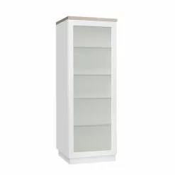 Anton vitriinissä on todella tyylikäs maitolasinen ovi! Kun kotiin halutaan säilytyskaluste, johon saa esimerkiksi astioita tai muita kauniita esineitä esille, suosittelemme valitsemaan tyylikkään ja kotimaisen Anton A8.2 vitriinin maitolasilla. Vitriinissä on neljä lasista hyllyä, joille tavaroita voi helposti asetella. Esillä olevat tavarat saavat hienon paikan, koska ne näkyvät hieman kaapista maitolasisen oven takaa, mutta eivät kuitenkaan näy kokonaan. Lisävarusteeksi voi vielä hankkia LED-valaisimen, jolloin sisällä olevat esineet pääsevät entistä paremmin esille. Vitriinissä on automaattisesti lasiset hyllyt, mutta vitriini on saatavilla myös puuhyllyillä varustettuna. Jos vitriiniin halutaan puuhyllyt, ilmoita siitä tilauksen yhteydessä kommenttiosiossa. Ulkonäöltään siis Anton vitriini on todella näyttävä ja selkeälinjainen. Vitriinin ovi toimii helpolla ponnahdusmekanismilla, eli sitä oven edustaa vain painetaan kevyesti ja se aukeaa. Anton vitriiniin voi valita yläkannen värin neljän vaihtoehdon väliltä. Myös jalat vitriiniin voi valita, koska vitriini on saatavilla sekä sokkelilla että puujaloilla. Tilaa Anton A8.2 vitriini verkkokaupastamme edulliseen hintaan! Tekniset tiedot: Värivaihtoehdot: valkoinen, valkoinen/hunaja tammi, valkoinen/kaura, valkoinen/hopea jalava Vitriinissä maitolasi Ovi toimii ponnahdusmekanismilla Ponnahdusmekanismilla oleva ovi aukeaa sen reunaa kevyesti painamalla Tuotteen runko MFC-levyä, laatikkojen ja ovien etusarjat maalattua MDF-levyä Voit valita vitriinin sokkelilla tai korkeilla puujaloilla Tuotteen kaksipuolinen taustalevy on valkoinen myös tuotteen takapuolella Lisävarusteena voit tilata LED- valaisimen Toimitetaan valmiiksi koottuna, jalat kiinnitettävä vitriiniin Kotimainen Vitriini saatavilla myös puuhyllyillä varustettuna. Mikäli vitriiniin halutaan puuhyllyt, ilmoita tieto tilauksen kommenttiosiossa. Vitriinin mitat: Vitriinin mitat: leveys 50 cm, syvyys 49 cm ja korkeus sokkelilla 141cm ja puujaloilla 149 cm Laatu: Hiipakan Pohjanmaalla valmistamat huonekalut ovat todella laadukkaita ja kestäviä. Materiaalit ovat hyviä ja tuotteet vankkoja ja tukevia. Laatikoiden ponnahdus- ja hidastusmekanismit ovat käteviä ja toimivia. Anton jalkasarjan kiinnitysohje