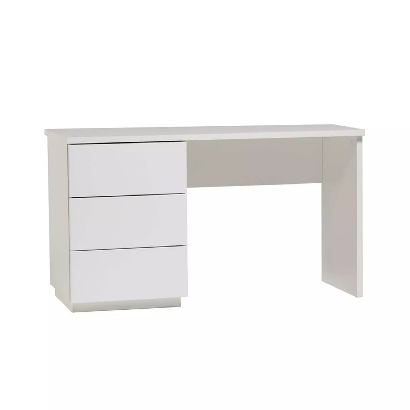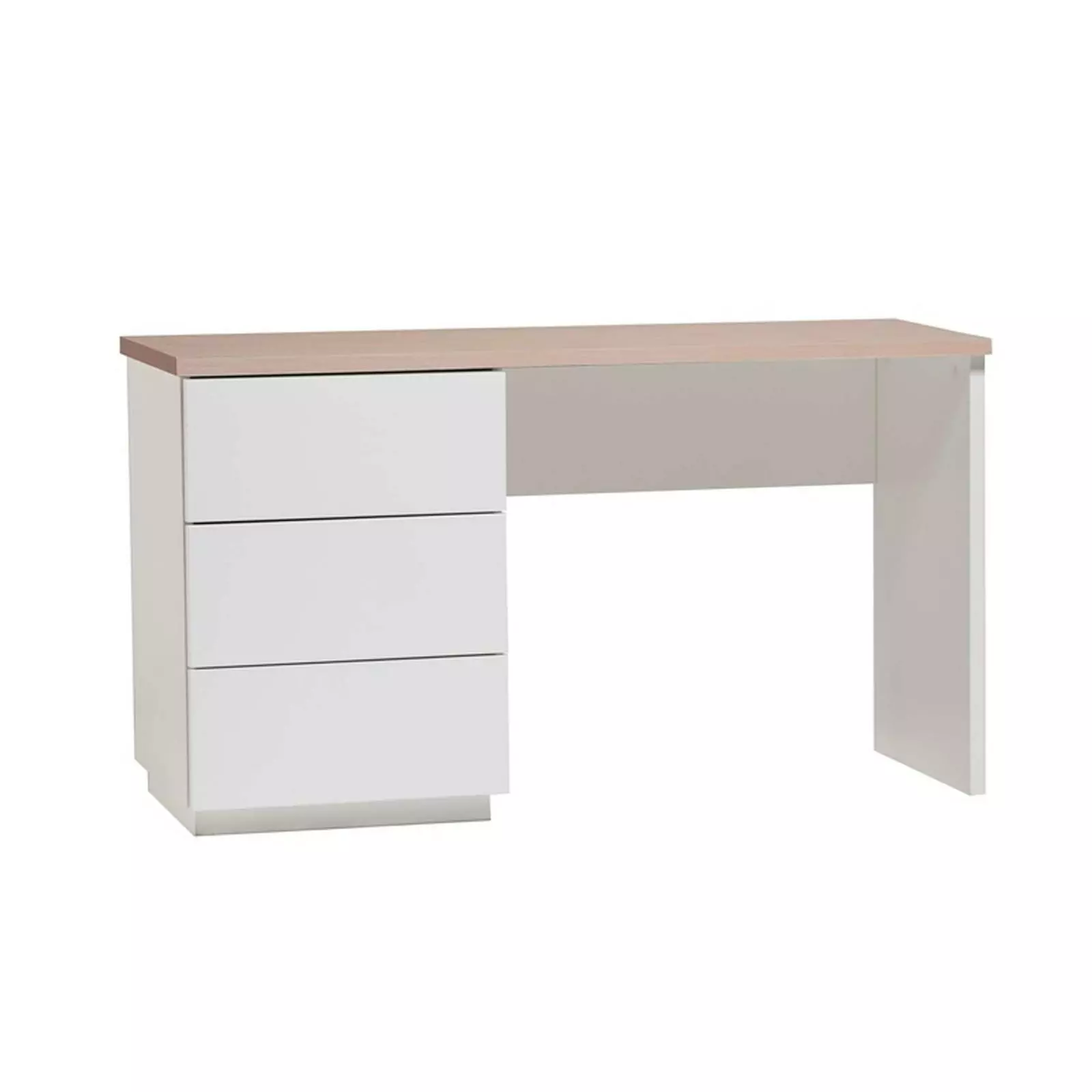 Anton työpöytä sopii hienosti pieneenkin tilaan! Hiipakan valmistama Anton työpöytä on väriltään jokaiseen kotiin sopiva valkoinen ja kooltaan sopivan näppärä. Työpöydän runko ja edustat ovat aina valkoiset, mutta yläkannen väri on valittavissa valkoisen,hunaja tammen, kauran tai hopea jalavan välillä. Anton työpöytä on käytännöllinen ja toimiva, koska siinä on kolme laatikkoa säilytystilaa antamassa. Anton työpöydän laatikot ja ovet toimivat ponnahdusmekanismilla, joten voit vain painaa kevyesti laatikon edustaa aukaistaksesi ne. Työpöydän voi tilata myös laatikoiden sijaan kaapilla varustettuna. Lisäksi laatikoiden puolen voi valita, joten ilmoita tilauksen yhteydessä kommenttiosiossa, haluatko laatikoiden olevan edestä katsottuna oikealla vai vasemmalla puolella. Tilaa kotimainen Anton työpöytä verkkokaupastamme edullisella hinnalla! Tekniset tiedot: Värivaihtoehdot: valkoinen, valkoinen/hunaja tammi, valkoinen/kaura, valkoinen/hopea jalava Työpöydässä kolme laatikkoa Laatikot toimivat kätevällä ponnahdusmekanismilla Ponnahdusmekanismilla olevat ovet ja laatikot aukeavat niiden reunaa kevyesti painamalla Laatikoissa metalliset mikroliukukiskot Tuotteen runko MFC-levyä, laatikkojen ja ovien etusarjat maalattua MDF-levyä Tuotteen kaksipuolinen taustalevy on valkoinen myös tuotteen takapuolella Toimitetaan valmiiksi koottuna Kotimainen Työpöytä tilattavissa myös laatikoiden sijaan kaapilla Ilmoita tilauksen yhteydessä kommenttiosioon, haluatko laatikoiden olevan edestä katsottuna oikealla vai vasemmalla puolella Työpöydän mitat: Leveys 130 cm, syvyys 55 cm ja korkeus 73 cm Laatu: Hiipakan Pohjanmaalla valmistamat huonekalut ovat todella laadukkaita ja kestäviä. Materiaalit ovat hyviä ja tuotteet vankkoja sekä tukevia. Laatikoiden ponnahdus- ja hidastusmekanismit ovat käteviä ja toimivia. Anton työpöytä 130 kasausohje
