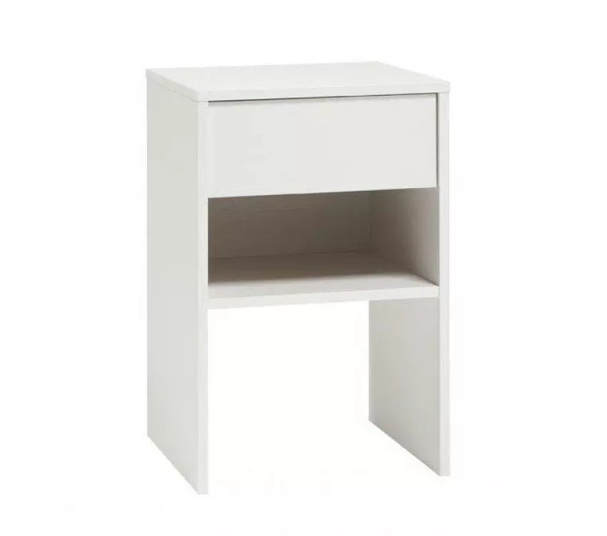 Hiipakan kotimainen ja kauniin yksinkertainen yöpöytä edulliseen hintaan! Black yöpöytä on kooltaan hyvin siro ja sopii sen vuoksi pienempäänkin tilaan. Yöpöytä on valmistettu Woodline kuvioidusta kalustelevystä, joka luo huonekalulle ainutlaatuisen eläväisen ja mielenkiintoisen pinnan. Mikäli haluat hieman hohtoa sisustukseesi, kannattaa lipaston väriksi valita valkoinen tai musta, sillä kummankin pinta hohtaa sopivasti sen taittaessa valoa. Black yöpöytä on todella hyvä valinta, kun haluat kotiisi kotimaista laatua edulliseen hintaan. Tekniset tiedot: Värivaihtoehtoina: valkoinen, musta, vintage tammi ja hopeajalava. Värivaihtoehdoista valkoinen ja musta woodline-kuosi ovat himmeästi kiiltäviä, mikä tuo lisää eloa yöpöytään Yöpöydässä on yksi laatikko ja avohylly Laatikossa on ponnahdusmekanismi, joten se aukeaa painamalla Toimitetaan osina Kotimainen Yöpöydän mitat: Leveys 40 cm, syvyys 40 cm ja korkeus 60 cm Laatu: Hiipakan Pohjanmaalla valmistamat huonekalut ovat todella laadukkaita ja kestäviä. Materiaalit ovat hyviä ja tuotteet vankkoja sekä tukevia. Laatikoiden metallikiskot ovat hyvin toimivat ja helposti liukuvat. Hiipakan lipastot ovat hyvä valinta, kun haluat kotimaista laatua kotiisi. Black yöpöytä kasausohje