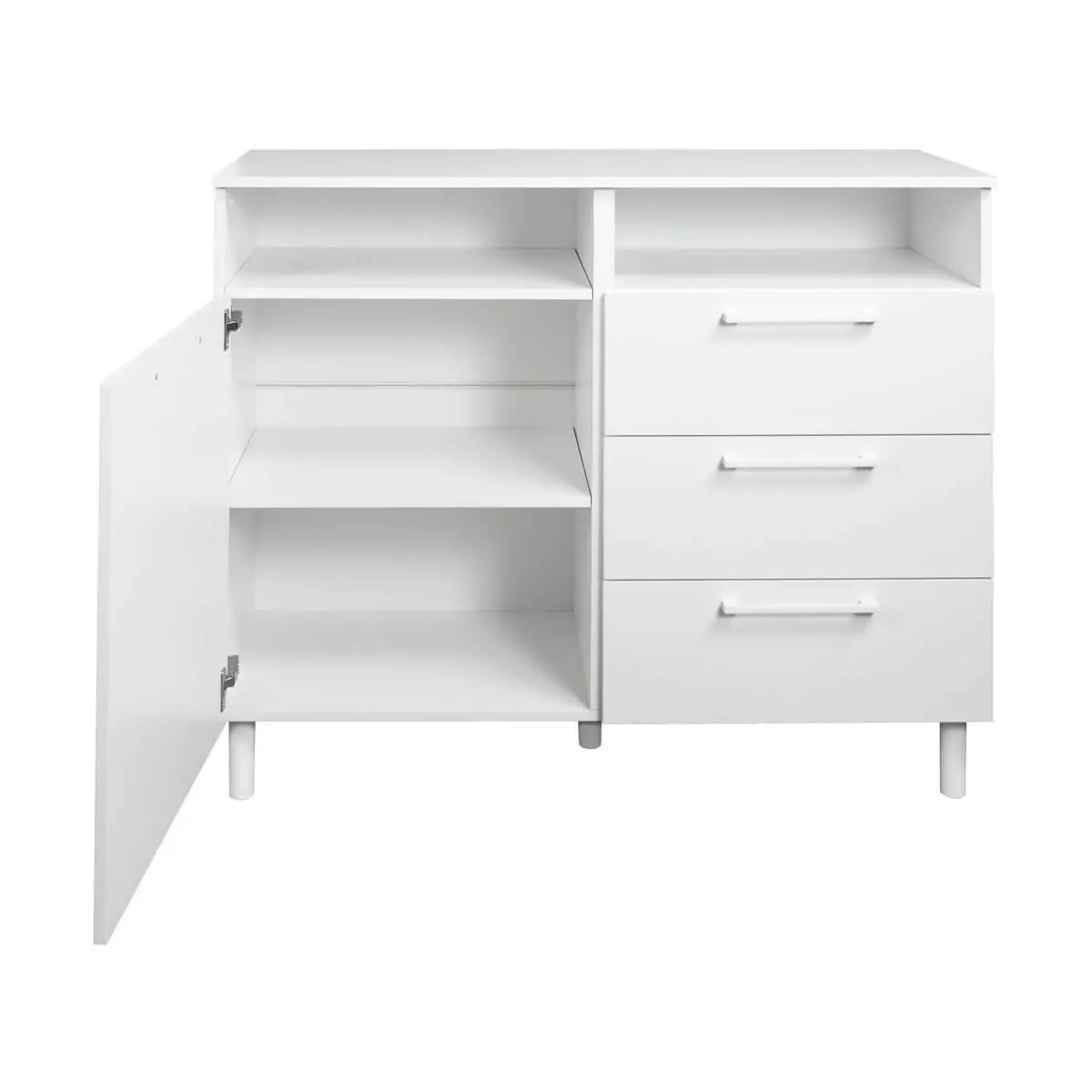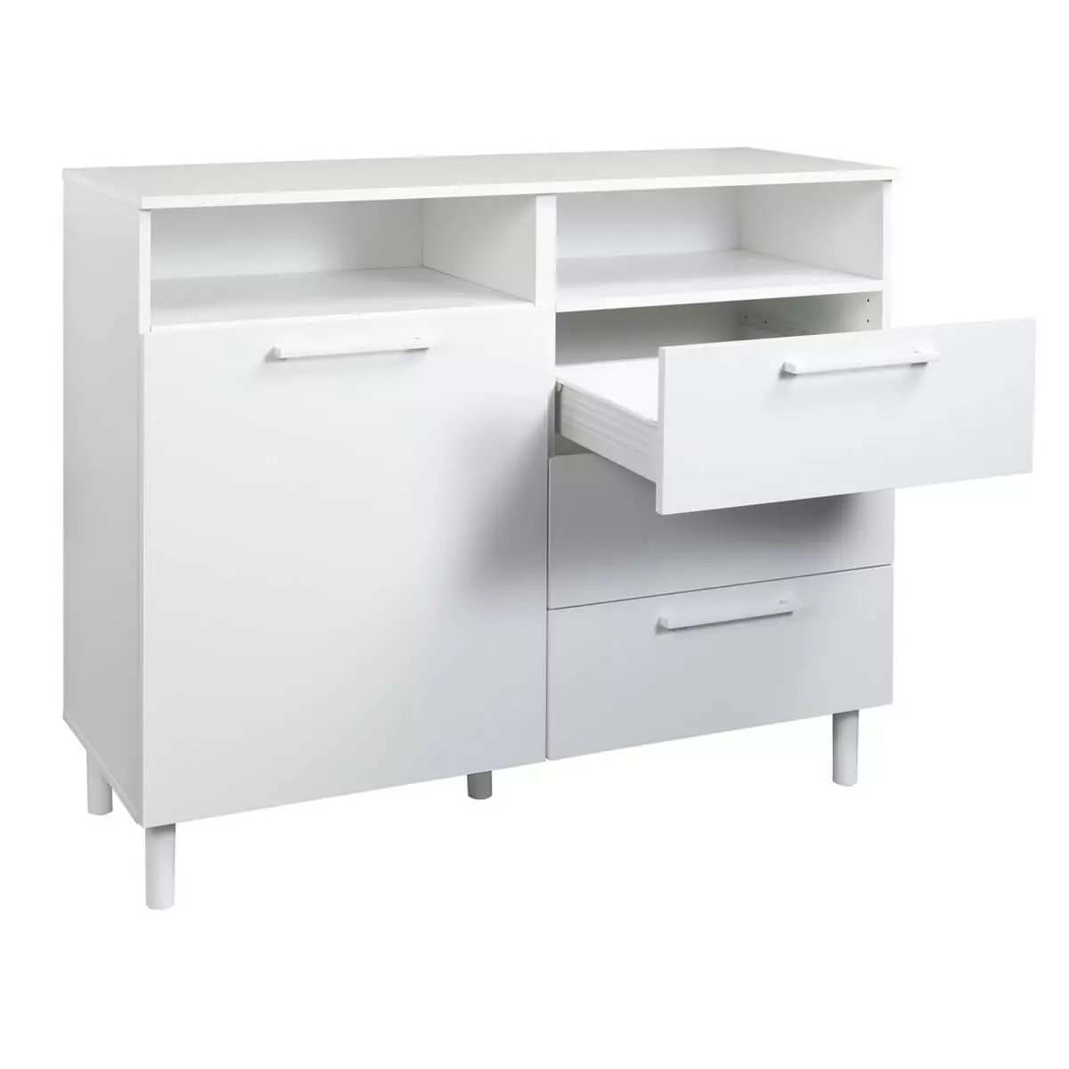 Kauniin ajaton Solo senkki sopii moneen tilaan ja sisustukseen! Valkoinen Solo senkki on muotoilultaan suoraviivainen, joka on helppo yhdistää moneen eri kotiin tuomaan lisää säilytys- sekä laskutilaa. Senkissä on kaksi avohyllyä, kaappi sekä kolme laatikkoa, joihin saa säilytykseen erilaiset kodin käyttötavarat. Korkeat valkoiset jalat tuovat ilmavuutta ja käytännöllisyyttä senkkiin, sillä senkin alta siivoaminen onnistuu helposti. Tilaa laadukas ja kotimainen Solo senkki nyt edulliseen hintaan verkkokaupastamme! Tutustu myös muihin Solo tuoteperheen kalusteisiin! Tekniset tiedot: Väri: valkoinen Vetimet ja jalat valkoiset Materiaali: pinnoitettu MFC-kalustelevy Metalliset vetimet ja jalat muovia Kaapin ovi sulkeutuu pehmeästi Kaapin sisällä välihylly jakamassa tilan Laatikoissa hidastavat saranat Kaksi avohyllyä Toimitetaan osina Kotimainen Senkin mitat: Senkin mitat: leveys 120 cm, syvyys 44,5 cm ja korkeus 97 cm Aukkojen mitat: leveys 56 cm, syvyys 42 cm ja korkeus 16,5 cm Jalkojen korkeus 13 cm Laatu: Hiipakan Pohjanmaalla valmistamat huonekalut ovat todella laadukkaita ja kestäviä. Materiaalit ovat hyviä ja tuotteet vankkoja sekä tukevia. Hiipakan senkit ovat hyvä valinta, kun haluat kotimaista laatua kotiisi. solo senkki koontiohje