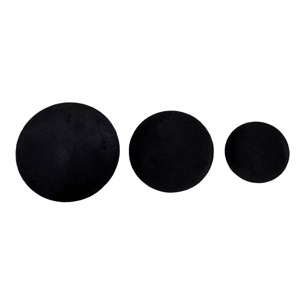 Giza ripustimet tuovat lisää säilytystilaa näyttävästi ja modernisti esimerkiksi eteistiloihin! Giza ripustimet ovat näyttävät sametilla verhoillut ripustimet, joita kuuluu samaan pakettiin aina kolme eri kokoa. Giza ripustimista voit muodostaa erilaisia ja erikokoisia kokoonpanoja esimerkiksi eteisen tai makuuhuoneen seinään vaatteiden ynnä muiden sellaisten ripustamista varten. Voit helposti leikitellä yhdistelemällä esimerkiksi keskenään erivärisiä ripustimia kauniiksi kokonaisuuksiksi eri tiloihin. Näitä Giza ripustimia voit halutessasi käyttää myös vetiminä! Tilaa nyt modernit Giza ripustimet/vetimet edullisesti verkkokaupastamme, ja toimitamme ne sinulle jopa parissa päivässä postipakettina! Tekniset tiedot: Väri: musta Ripustin metallia Verhoiltu mustalla sametilla Voi käyttää myös vetimenä Paketissa kolme erikokoista ripustinta Pääkuvassa näkyvät ruuvit tulevat pakkauksen mukana Toimitetaan kasattuna Ripustimien mitat: Korkeus 5 cm ja halkaisijat 6 cm, 8 cm ja 10 cm.