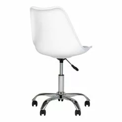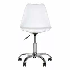 House Nordicin Stavanger on kaunis ja upeasti muotoiltu työtuoli! House Nordicin Stavanger työtuoli tuo tyylikkyyttä ja modernia ilmettä huoneeseen. Työtuoli on kuppimuotoiltu, joten siinä on mukava istua. Tuolin istuinosa on päällystetty PU-keinonahalla. Valkoisen työtuoli on helppo yhdistää eri sisustuksiin, ja se sopii monen erilaisen työpöydän kanssa. Stavanger työtuoli sopii mainiosti niin työhuoneeseen, kotitoimistoon kuin lastenhuoneeseen. Tuolin korkeus on myös säädettävissä. Tee työtilasta viihtyisä ja käytännöllinen tämän tyylikkään House Nordicin Stavanger tuolin avulla, ja tilaa se edullisesti verkkokaupastamme! Tekniset tiedot: Väri: valkoinen Materiaali: Pu-nahka ja kromi Muovikuori Korkeus säädettävissä kaasujousella Helppohoitoinen verhoilumateriaali Toimitetaan osina Työtuolin mitat: Leveys 48 cm, syvyys 54 cm ja korkeus 84-94 cm Stavanger työtuolin kasausohje