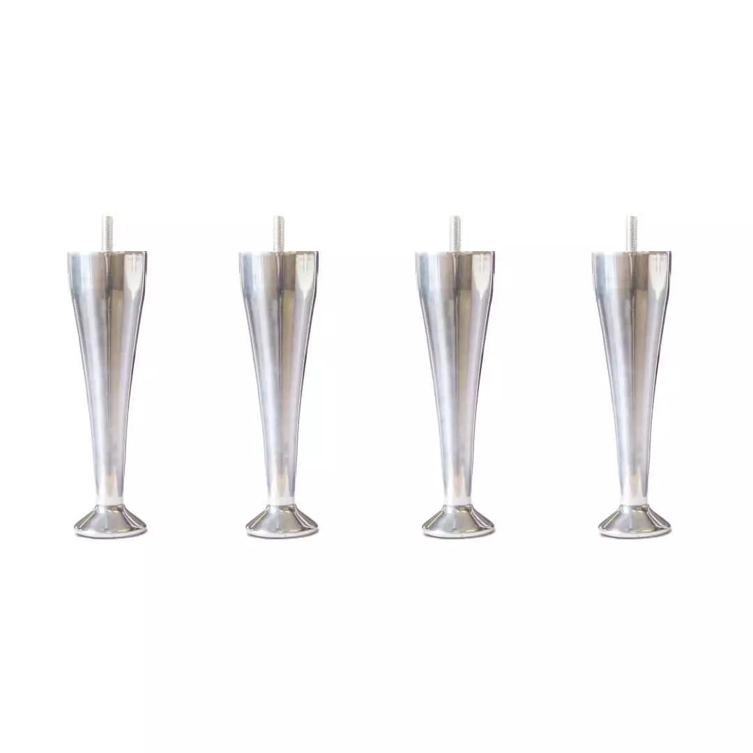 Ylellistä ilmettä sänkyyn saa kauniilla hopean värisellä Jalkasarjalla! Jalkasarja Legs Champagne tuo ylellistä ilmettä ja näyttävyyttä sänkyyn. Jalkasarja on tyylikkäästi muotoiltu ja kiiltävä hopean värinen pinta luovat upean kokonaisuuden. Jalkasarjan jalat sopivat kaikkiin sänkyihin, joissa jalat voidaan pyörittää kiinni ruuveilla. Jalkasarjaan kuuluu neljä kappaletta jalkoja. Jalat ovat metalliset ja siten myös kestävät sekä tukevat. Uudista sänkysi ilmettä, ja tilaa näyttävä Jalkasarja Legs Champagne verkkokaupastamme nyt edullisesti! Tekniset tiedot: Väri: hopea Metalliset jalat Sarjaan kuuluu 4 kpl jalkoja Sopii yhteen useiden sänkyjen kanssa Jalkasarjan mitat: Korkeus 12 cm