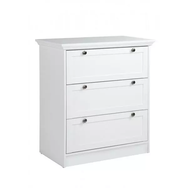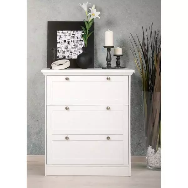 Lan lipasto on todella monikäyttöinen, sillä se sopii moniin kodin huoneisiin! Valkoisessa Lan lipastossa on kolme reilun kokoista laatikkoa, joissa mahtuu säilyttämään monia erilaisia kodin tavaroita, minkä vuoksi Lan lipasto on todella monikäyttöinen. Hyvä puoli Lan lipastossa on myös sen yksinkertaisen kaunis ulkonäkö, jonka ansiosta lipasto on helposti yhdistettävissä muihin sisustuksessa käytettyihin huonekaluihin. Lan lipastossa kauniina yksityiskohtana toimivat lipaston yläosassa olevat koristelistat, jotka tekevät muuten suoraviivaisesta lipastosta hieman ainutlaatuisemman. Tekniset tiedot: Väri: valkoinen Valmistettu kalustelevystä Metalliset vetimet Laatikoissa metallikiskot Toimitetaan osina Lipaston mitat: Lipaston mitat: leveys 80 cm, syvyys 45 cm ja korkeus 90 cm