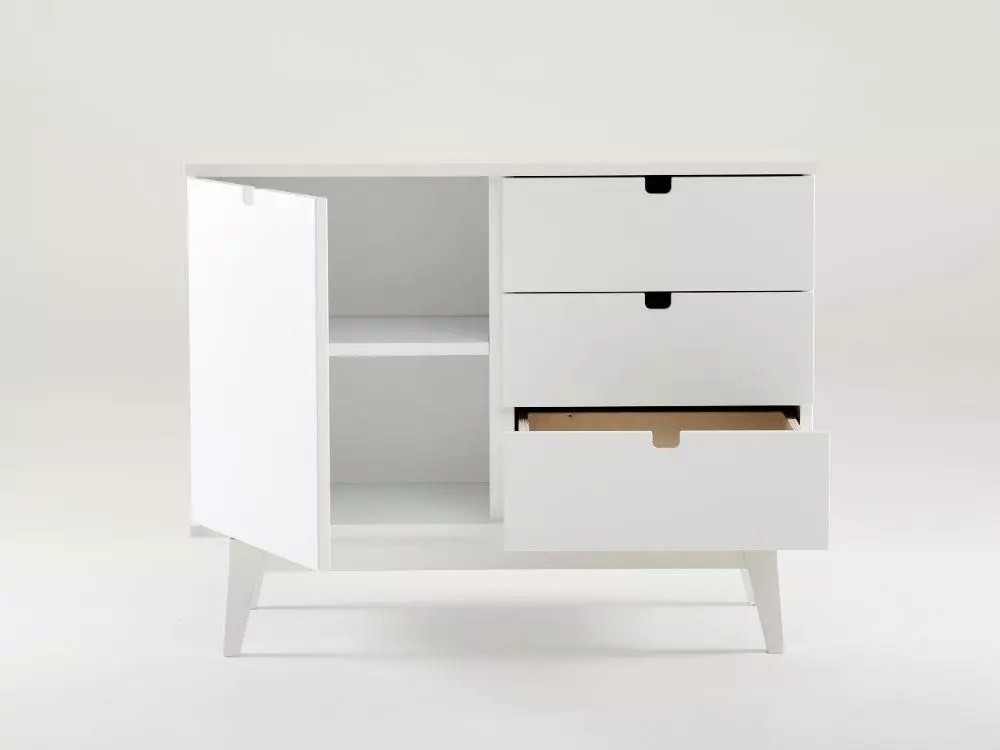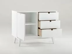 Kapea senkki on käytännöllinen vaihtoehto moniin eri kodin huoneisiin! Lerhamn senkki on tyylikäs ja moderni senkki, johon mahtuu säilöön monenlaisia kodin käyttötavaroita. Käytännöllistä säilytystilaa tästä senkistä löytyy kolmen laatikon ja yhden kaapin verran. Tämä ei kuitenkaan ole ainut senkin käytännöllinen ominaisuus, sillä senkin korkeat jalat tekevät sen alta siivoamisesta helppoa, eikä pölyä pääse kertymään lipaston alapuolelle niin helposti. Senkin laatikoiden kiskot ovat myös laadukkaat, minkä vuoksi laatikot kulkevat vaivatta. Tämän modernin mallisen senkin voit nyt tilata edulliseen tarjoushintaan verkkokaupastamme, ja kotiinkuljetuskin on alkaen 0 €! Käytä siis tarjous hyödyksesi ja tilaa edullinen sirokokoinen senkki! Tekniset tiedot: Väri: valkoinen Valmistettu mdf-levystä ja massiivipuusta Laatikoissa metallikiskot Laatikoiden edustoissa olevat kolot toimivat vetiminä Toimitetaan osina Senkin mitat: Senkin mitat: leveys: 94,5 cm, syvyys 40 cm ja korkeus 74,5 cm Jalkojen kokonaiskorkeus 18 cm ja korkeus sokkelin alareunaan 12,5 cm Laatikon sisäleveys 38,9 cm Laatikon sisäsyvyys 32,3 cm Laatikon sisäkorkeus 12,6 cm laatikon reunaan ja 14,4 cm laatikon edustan yläreunaan Kaapin sisäleveys 43 cm Kaapin sisäsyvyys 37 cm Kaapin sisäkorkeus 52,4 cm Kaapissa 1 säädettävä hylly Hyllyn korkeus valittavissa 5 korkeuden välillä Mahdolliset 5 korkeutta 32 mm välein