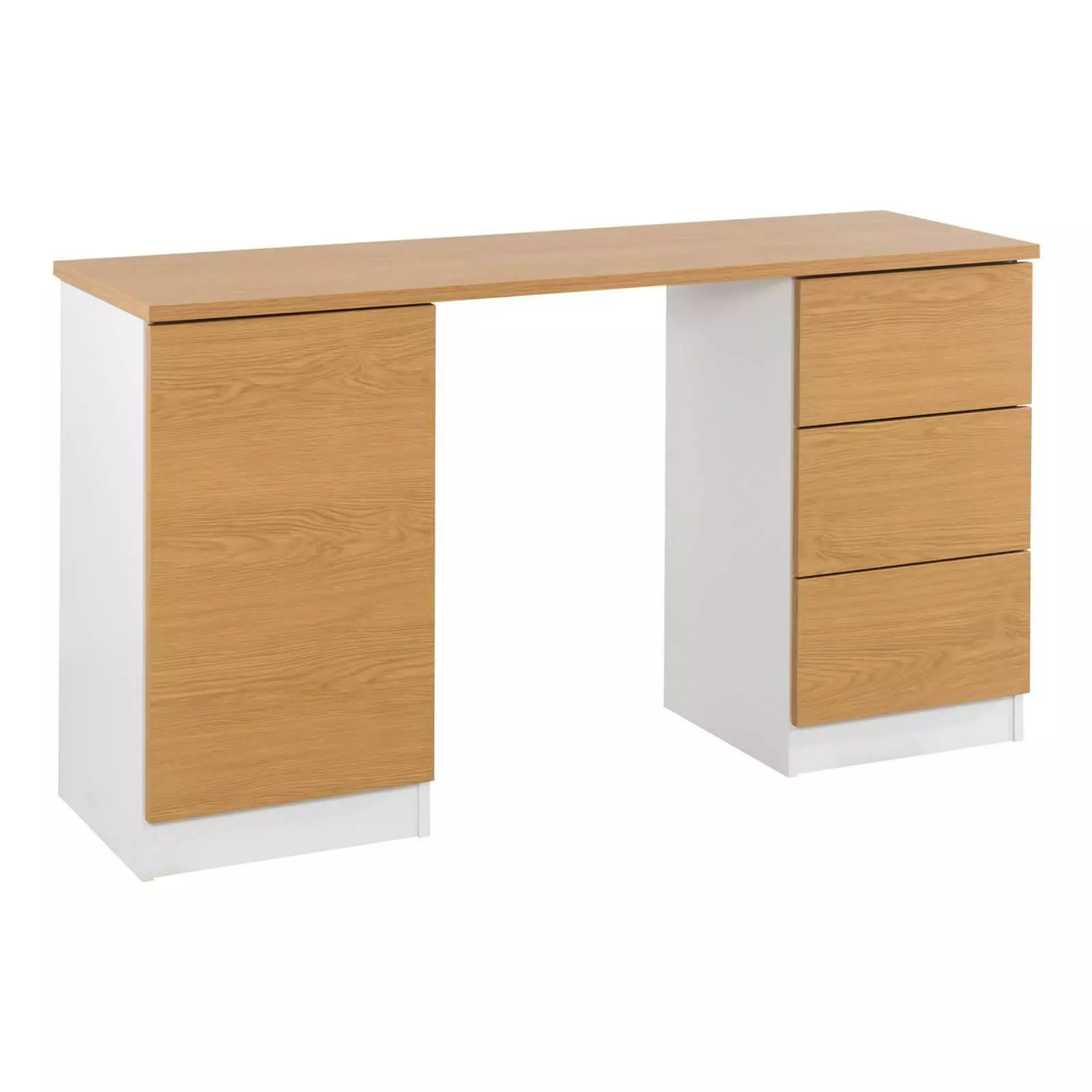 Kestävän ja laadukkaan Lilja työpöydän äärellä on mukava työskennellä. Kotimainen Lilja työpöytä on moneen tilaan mukautuva, sillä työpöydästä on valittavana useita värivaihtoehtoja! Kannesta, rungosta, ovesta sekä edustoista on saatavana kolme erilaista vaihtoehtoa. Voit esimerkiksi valita kaikki ne samalla värillä tai halutessasi kaikki keskenään erivärisinä. Lilja työpöydässä on toisella puolella kolme vetolaatikkoa. Laatikot kulkevat vaivatta metallisten liukukiskojen avulla. Ilman vedintä olevat laatikot toimivat nykyaikaisella ponnahdusmekanismilla, jolloin laatikkoa tarvitsee vain painaa kevyesti sen avatakseen. Työpöydän toisella puolella on lisäksi ovikaappi, jonka sisällä on yksi levyhylly, joten Lilja tarjoaa runsaasti säilytystilaa papereille ja toimistotarvikkeille. Kestävän ja laadukkaan työpöydän äärellä on mukava työskennellä. Lilja tuoteperheestä on saatavana useita muitakin huonekaluja, joihin voit tutustua verkkokaupassamme! Valitse haluamasi kokonaisuus, ja tilaa tyylikäs Lilja työpöytä 2-osainen edulliseen hintaan! Kotiinkuljetus alkaen 0e! Tekniset tiedot: Kannen värivaihtoehdot: valkoinen, tammi ja musta Rungon, ovien ja edustan värivaihtoehdot: valkoinen, tammi ja musta Valmistettu kalustelevystä Laatikoissa hidastavat kiskot Kaapin sisällä 1 hyllylevy, jonka korkeuden voi säätää Ilman vedintä olevat vetolaatikot toimivat ponnahdusmekanismilla Toimitetaan osina, kansiosa irrallaan, laatikosto kasattuna Kätisyys valittavissa, ilmoita kommenttikenttään, mikäli haluat laatikoston oikeakätisen sijaan vasenkätisenä Lisävarusteena saatavana valkoinen lasikansi, joka suojaa pöydän pintaa Kotimainen Lilja tuoteperheestä on saatavana myös 1-osainen työpöytä laatikoilla ja 1-osainen työpöytä ovikaapilla Työpöydän mitat: Leveys 140 cm, syvyys 43 cm ja korkeus 77,8 cm Laatu: Kauhajoella, Pohjanmaalla, valmistetut Lilja-tuoteperheen huonekalut ovat todella laadukkaita ja kestäviä. Materiaalit ovat hyviä ja huonekalut ovat vankkoja ja tukevia. Laatikoiden metallikiskot ovat hyvin toimivat ja helposti liukuvat. Lilja-tuoteperheen huonekalut ovat hyvä valinta, kun haluat kotimaista laatua kotiisi. Koska Lilja valmistajan tehdas sijaitsee lähellä myymäläämme, saamme toimitettua kyseiset huonekalut nopeasti asiakkaillemme.