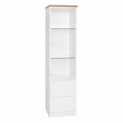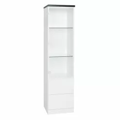 Lilja vitriinin voi yhdistää myös muihin Lilja sarjan tuotteisiin ja luoda näyttävän kokonaisuuden! Lilja vitriiniin lasioven taakse saa kauniit esineet ja astiat arvokkaasti esille. Vitriinin alaosassa on kaksi vetolaatikkoa tuomassa vielä lisää säilytystilaa. Kaiken lisäksi Lilja tuotteista voi valita mieleisensä värin useista eri vaihtoehdoista. Siron kokonsa ansiosta vitriini sopii hyvin pienempäänkin tilaan. Lilja vitriinin kannesta saatavana on kuusi eri värivaihtoehtoa, ja rungosta sekä edustoista kolme eri värivaihtoehtoa, joten voit valita juuri mieleisesi kokonaisuuden. Voit esimerkiksi valita kaikki ne samalla värillä tai halutessasi vaikka rungon, kannen ja oven keskenään erivärisinä. Lilja vitriiniin voi valita joko lasioven tai maitolasin lisämaksusta. Vitriinin ovi ja laatikot toimivat käytännöllisellä push open -mekanismilla, joten kevyesti reunaa painamalla ovet aukeavat. Kotimaiset Lilja sarjan tuotteet on valmistettu kestävästä kalustelevystä, joten kyseessä on laadukas ja pitkäikäinen vitriini. Tutustu myös muihin Lilja sarjan tuotteisiin verkkokaupassamme! Tekniset tiedot: Kannen värivaihtoehdot: tammi, musta, valkoinen, valkosaarni, antrasiitti ja betoni Rungon ja edustojen värivaihtoehdot: valkoinen, musta ja tammi Valmistettu kalustelevystä Vitriinissä lasiovi, vitriinin sisällä kaksi lasihyllyä Maitolasin voi valita lisämaksusta +20 e Kaksi vetolaatikkoa Ovi ja laatikot toimivat ponnahdusmekanismilla Toimitetaan osina, kansiosa irrallaan, runko kasattuna Kotimainen Vitriinin mitat: Leveys 40,7 cm, syvyys 41 cm, korkeus 162 cm Laatu: Kauhajoella, Pohjanmaalla, valmistetut Lilja-tuoteperheen huonekalut ovat todella laadukkaita ja kestäviä. Materiaalit ovat hyviä ja huonekalut ovat vankkoja ja tukevia. Laatikoiden metallikiskot ovat hyvin toimivat ja helposti liukuvat. Lilja-tuoteperheen huonekalut ovat hyvä valinta, kun haluat kotimaista laatua kotiisi. Koska Liljan valmistajan tehdas sijaitsee lähellä myymäläämme, saamme toimitettua kyseiset huonekalut nopeasti asiakkaillemme.