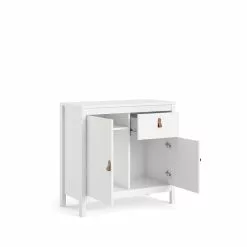 Madrid senkki 2 + 1 on monipuolinen säilytysratkaisu kotiin! Madrid senkki 2+1 on kauniin valkoinen ja muotoilultaan tyylikäs valinta kotiin kuin kotiin. Ulkonäkönsä sekä kokonsa ansiosta senkki on myös helppo sijoittaa kodin erilaisiin tiloihin. Senkki antaa monipuolisia säilytysmahdollisuuksia, sillä siinä on kaksi erikokoista kaappia ja yksi laatikko. Senkin sisälle saa siis säilytettyä tai piilotettua erilaisia kodin tavaroita mukavasti. Madrid senkin mukana tulevat sekä nuppi- että nahkavetimet, joista senkkiin voi asettaa omaan makuunsa parhaiten sopivan vaihtoehdon. Varmaa on kuitenkin se, että senkin avulla kotiin saadaan näyttävä sekä miellyttävän tilava säilytysratkaisu. Tilaa kauniin valkoinen Madrid senkki 2+1 edullisesti verkkokaupastamme, ja toimitamme sen jopa parissa päivässä! Tekniset tiedot: Väri: valkoinen Valmistettu kalustelevystä Sisältää nupit ja nahkavetimet Laatikossa metallikiskot Toimitetaan osina Valmistettu Tanskassa Lipaston mitat: Senkin mitat: leveys: 82,1 cm, syvyys 38,4 cm ja korkeus 79,7 cm Jalkojen korkeus 10 cm Laatikon sisäleveys 33,7 cm Laatikon sisäsyvyys 33,1 cm Laatikon sisäkorkeus 12,7 cm laatikon reunaan Pienen kaapin sisäleveys 37,4 cm Pienen kaapin sisäsyvyys 35,4 cm Pienen kaapin sisäkorkeus 38,1 cm laatikon reunaan Ison kaapin sisäleveys 37,4 cm Ison kaapin sisäsyvyys 35,4 cm Ison kaapin kokonaissisäkorkeus 56,5 cm ylimmän hyllyn sisäkorkeus 23,7 cm Isommassa kaapissa 1 kiinteä hylly Madrid senkki 2+1 kasausohje ja kantavuustiedot