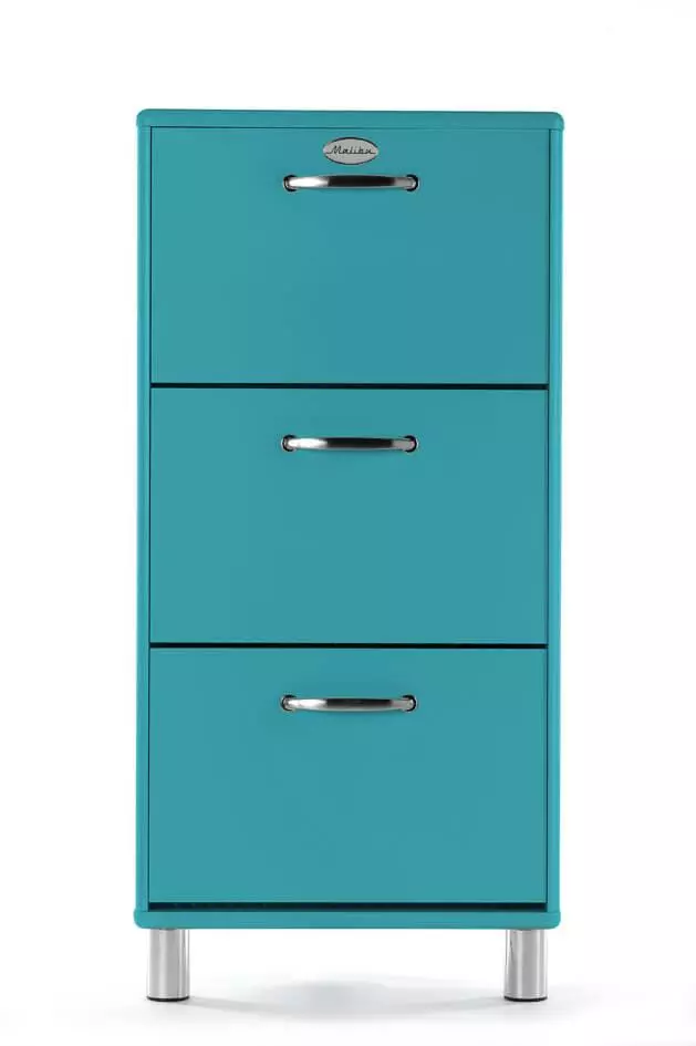 Malibu kenkäkaappi tuo eteiseen ainutlaatuista ilmettä ja järjestystä! Eteiseen uutta ja persoonallista ilmettä saa upealla turkoosin värisellä Malibu kenkäkaapilla, joka on todella näyttävä katseenvangitsija sisustuksessa. Malibu on saanut inspiraation 50- ja 60-luvun nuorisokulttuurin tyylistä, joka ilmaisee yksilöllisyyttä ja erilaisuutta. Malibu kenkäkaappi on erittäin käytännöllinen, sillä kaappiin mahtuu useampi pari kenkiä säilytykseen. Kenkäkaapin avulla pidät myös eteisen helpommin järjestyksessä ja siistinä. Laadukas Malibu kenkäkaappi on valmistettu maalatusta mdf-levystä ja kalustelevystä. Upeana yksityiskohtana lipastossa on metalliset vetimet, jotka viimeistelevät tyylikkään ilmeen. Voit hankkia samasta Malibu sarjasta myös eteispenkin, ja tehdä eteisestä vieläkin käytännöllisemmän. Valitsemalla useamman Malibu sarjan tuotteen voit luoda upean kokonaisuuden tilaan. Tutustu upeaan Malibu tuoteperheeseen ja tilaa omasi nyt edulliseen hintaan verkkokaupastamme! Tekniset tiedot: Väri: turkoosi Materiaali: Maalattu mdf-levy ja kalustelevy Vetimet ja jalat metallia Kolmella laatikolla Laatikoissa metallikiskot Useita värivaihtoehtoja Lattian suojaamiseksi voi asentaa jalkojen alle huopatyynyt Älä aseta tuotetta kostealle pinnalle tai suoraan auringonpaisteeseen Suunniteltu sisäkäyttöön Toimitetaan osina Kenkäkaapin mitat: Leveys 58 cm, syvyys 24 cm ja korkeus 121 cm Kasausohje: kenkäkaappi
