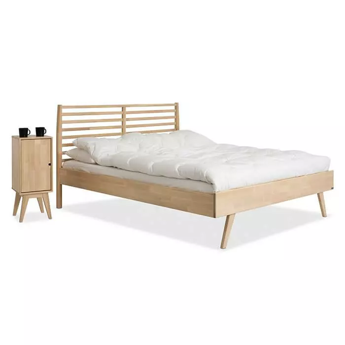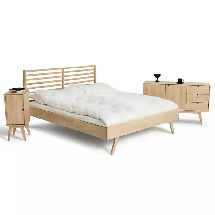 Kiteen huonekalutehtaan elegantti ja laadukas Notte sänky edulliseen tarjoushintaan verkkokaupastamme! Kotimainen ja elegantti Notte sänky on upea sisustuksellinen elementti makuuhuoneeseen. Sängyn korkeat vinojalat ja keveä pääty tekevät Notte sängystä kauniin ilmavan ja modernin näköisen sängyn, jonka alta on miellyttävän helppo esimerkiksi imuroida. Värivaihtoehtoja Notte sängyistä on kaksi: kauniin luonnollinen koivu ja tyylikkään raikas valkoinen. Massiivikoivusta valmistettu Notte sänky on ulkomuodoltaan sirolinjainen ja kevyt, mutta tästä huolimatta erittäin tukeva ja laadukas sänky. Sänkyä on saatavana 160 cm ja 180 cm leveänä. Voit nyt tilata Notte sängyn koivun värissä tai valkoisena erittäin edulliseen tarjoushintaan verkkokaupastamme, ja me kotiinkuljetamme ne ulko-ovellesi jopa 2 päivässä! Notte sängyn tiedot: Värivaihtoehdot: koivu ja valkoinen Valmistettu massiviikoivusta Sisältää puusälepohjan (saatavilla myös vaneri- ja moottoripohjalla) Patja ei sisälly hintaan! Tuotteessa käytetyt lakat kuuluvat parhaaseen M1 luokkaan, eli niistä haihtuu erittäin vähän mitään yhdisteitä huonetilaan. Toimitetaan osina Kotimainen! Koivuinen 160 cm sänky löytyy heti varastosta, muut koot ja värit tilaustuotteita! Notte sänkyjen mitat: Patjakoko: 160 x 200 cm ja 180 x 200 cm Sängyn ulkomitat: leveys 169 cm, pituus 207 cm ja korkeus 103 cm ja leveys 189 cm, pituus 207 cm ja korkeus 103 cm