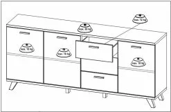 Hanki kotiisi reilun kokoinen ja näyttävä Oslo senkki, kun tarvitset kotiisi lisää säilytystilaa katsetta kestävässä muodossa! Ilmavan ja modernin näköinen Oslo senkki sopii hyvin esimerkiksi skandinaaviseen tai moderniin sisustukseen. Sen raikkaan valkoiseen ilmeeseen tuovat sopivasti särmää sen duntetammen väriset kannet, jalat ja vetimet. Ulkonäkönsä lisäksi Oslo senkki on myös käytännöllinen runsaan säilytystilan ja korkeiden jalkojen ansiosta, jolloin siivoaminen senkin alta käy helposti. Senkistä turvallisemmen ja käytännöllisemmän tekevät myös sen soft-close menetelmällä hitaasti sulkeutuvat ovet ja laatikot, jolloin perheen pienempienkään sormet eivät jää kipeästi niiden väliin. Tästä modernista Oslo tuoteperheestä löydät myös muita tuotteita, aina tv-tasosta vitriiniin, joten saat koottua niistä kauniin kokonaisuuden esimerkiksi olohuoneeseesi! Tilaa nyt Oslo senkki edullisesti verkkokaupastamme ja toimitamme sen aina edulliseen hintaan ulko-ovellesi! Tekniset tiedot: Väri: valkoinen/duntetammi Valmistettu kalustelevystä Ovissa ja laatikoissa soft-close hidastusmekanismi, jonka ansiosta ovet sulkeutuvat turvallisesti ja hitaasti Puiset vetimet Toimitetaan osina Valmistettu Saksassa Senkin mitat: Senkin mitat: leveys: 192 cm, syvyys 40 cm ja korkeus 85 cm Oslo 3 + 3 senkin kasausohjeet ja kantavuustiedot