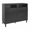 Tilaa nopealla toimituksella näyttävä Ray senkki edulliseen tarjoushintaan verkkokaupastamme – kotiinkuljetus alkaen 0 €! Mustaruskea Ray senkki on ainutlaatuisen uniikki senkki kauniine yksityiskohtineen. Korkeat ruskeat jalat ja mustat tavallisesta poikkeavat vetimet tuovat senkkiin sekä näköä että ryhtiä. Sirokokoinen Ray senkki sopii säilytyskalusteeksi moniin kodin tiloihin aina eteistiloista olohuoneeseen ja makuuhuoneeseen. Mustaruskeassa Ray senkissä on kaksi laatikkoa ja kaappi, joten säilytystilaa löytyy monenlaiseen tarpeeseen. Ray senkki on valmistettu kalustelevystä ja senkin jalat ovat puuta, joten senkki on kestävä ja tukeva. Tilaa Ray senkki nyt edulliseen tarjoushintaan verkkokaupastamme, ja me kotiinkuljetamme sen ulko-ovellesi saakka nopeasti ja edullisesti! Tekniset tiedot: Väri: Musta/pähkinä Materiaali: pinnoitettu kalustelevy Jalkojen materiaali: puu Senkissä kaksi laatikkoa ja kaappi Laatikoissa metallikiskot Toimitetaan osina Senkin mitat: Senkin mitat: leveys: 101,8 cm, syvyys 40,1 cm ja korkeus 72,2 cm Jalkojen korkeus 22 cm Laatikon sisäleveys 43,7 cm Laatikon sisäsyvyys 33,1 cm Laatikon sisäkorkeus 12,7 cm Kaapin sisäleveys 46,9 cm Kaapin sisäsyvyys 36 cm Kaapin kokonaissisäkorkeus 43,9 cm Kaapissa 1 säädettävä hylly Mahdolliset 2 korkeutta 64 mm välein Ray senkki kapea kasausohje ja kantavuustiedot