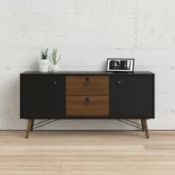 Leveä Ray senkki sopii mainiosti esimerkiksi tv-tasoksi olohuoneeseen – kotiinkuljetus maksimissaan 29 euroa! Mustaruskea Ray senkki on ainutlaatuisen uniikki senkki kauniine yksityiskohtineen. Korkeat ruskeat jalat ja mustat tavallisesta poikkeavat vetimet tuovat senkkiin sekä näköä että ryhtiä. Reilun kokoinen Ray senkki sopii esimerkiksi tv-tasoksi tai vaikkapa vaatteiden säilyttämiseen tai lastenhuoneen säilytyskalusteeksi. Mustaruskeassa Ray senkissä on kaksi laatikkoa ja kaksi kaappia, joten säilytystilaa löytyy monenlaiseen tarpeeseen. Ray senkki on valmistettu kalustelevystä ja senkin jalat ovat puuta, joten senkki on kestävä ja tukeva. Tilaa Ray senkki nyt edulliseen tarjoushintaan verkkokaupastamme, ja me kotiinkuljetamme sen ulko-ovellesi saakka nopeasti ja edullisesti! Tekniset tiedot: Väri: musta/pähkinä Materiaali: pinnoitettu kalustelevy Jalkojen materiaali: puu Senkissä kaksi laatikkoa ja kaksi kaappia Laatikoissa metallikiskot Toimitetaan osina Senkin mitat: Leveys 150,5 cm, syvyys 40 cm ja korkeus 72,5 cm