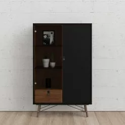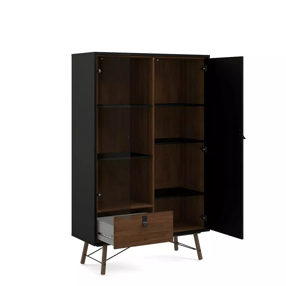Tukevat ja laadukkaat Tvilumin Ray tuoteperheen tuotteet edullisesti Tuppu-Kalusteelta! Mustaruskea Ray vitriini on ainutlaatuisen uniikki vitriinikaappi kauniine yksityiskohtineen. Korkeat ruskeat jalat ja mustat tavallisesta poikkeavat vetimet tuovat vitriiniin sekä näköä että ryhtiä. Sirokokoinen Ray vitriini sopii kokonsa vuoksi mainiosti pienempäänkin asuntoon tai olohuoneisiin, joissa ei ole tilaa suurille tai korkeille vitriineille. Mustaruskeassa Ray vitriinissä on laatikko, kaappi ja kolme avohyllyä, joten säilytystilaa löytyy monenlaiseen tarpeeseen. Ray vitriini on valmistettu kalustelevystä ja vitriinikaapin jalat ovat puuta, joten vitriini on kestävä ja tukeva. Tilaa Ray vitriini nyt edulliseen tarjoushintaan verkkokaupastamme, ja me kotiinkuljetamme sen ulko-ovellesi saakka nopeasti ja edullisesti! Tekniset tiedot: Väri: musta/pähkinä Materiaali: pinnoitettu kalustelevy Jalkojen materiaali: puu Vitriinissä on laatikko, kaappi ja kolme avohyllyä Laatikossa metallikiskot Toimitetaan osina Vitriinin mitat: Leveys 102 cm, syvyys 40 cm ja korkeus 162 cm