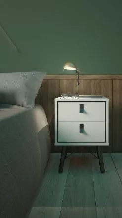 Tyylikkäässä Ray yöpöydässä on mukava säilyttää pieniä tavaroita! Moderni ja selkeälinjainen Ray yöpöytä tuo mukavasti lisää näyttävyyttä makuuhuoneen sisustukseen. Yöpöydässä on upea mustavalkoinen väritys, sopivan korkeat puiset jalat sekä tavallisesta poikkevat vetimet. Ray on todella ryhdikäs ja tukeva, joten se on hyvä valinta yöpöydäksi. Pöydässä on myös mukavasti säilytystilaa pienille tavaroille, sillä Ray yöpöydässä on kaksi metallikiskoilla liikkuvaa laatikkoa. Lisäksi pöydän päälle voi asetella lukulampun tai jonkin kasvin lisää tyylikkyyttä tuomaan. Pienen kokonsa ja upean ulkonäkönsä ansiosta yöpöytä on helppo sijoittaa useisiin erilaisiin makuuhuoneisiin. Tilaa edullinen Ray yöpöytä verkkokaupastamme, ja toimitamme sen jopa muutamassa päivässä! Tekniset tiedot: Väri: valkoinen/musta Materiaali: pinnoitettu kalustelevy Jalkojen materiaali: puu Yöpöydässä kaksi laatikkoa Laatikoissa metallikiskot Toimitetaan osina Yöpöydän mitat: Yöpöydän mitat: leveys: 43,3 cm, syvyys 40,1 cm ja korkeus 59,6 cm Jalkojen korkeus 22 cm Laatikon sisäleveys 33,7 cm Laatikon sisäsyvyys 33,1 cm Laatikon sisäkorkeus 10,7 cm laatikon reunaan Ray yöpöytä kasausohje ja kantavuustiedot