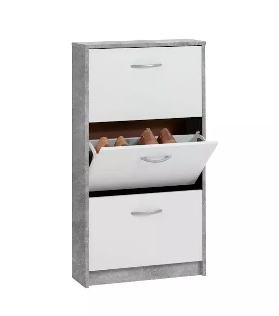 Erittäin edullisessa Step 3 kenkäkaapissa on mukavasti säilytystilaa! Step 3 kenkäkaappi on korkealaatuisesta naarmuuntumattomasta kalustelevystä valmistettu kenkäkaappi, joten se pysyy siistinä ja naarmuttomana pitkään. Kenkäkaappi on kauniin valkoharmaa, joten väriltään kaappi on yhdisteltävissä moniin muihin väreihin. Edulliseen Step 3 kenkäkaappiin mahtuu noin kuusi kenkäparia, joten säilytystilaakin kenkäkaapissa on mukavasti. Step 3 kenkäkaapin avulla pidät eteistilat helpommin järjestyksessä ja siistinä! Tekniset tiedot: Väri: harmaa/valkoinen Valmistettu korkealaatuisesta, naarmuuntumattomasta melamiinipinnoitetusta kalustelevystä Vetimet muovia Tilaa noin kuudelle kenkäparille Toimitetaan osina Valmistettu Saksassa Kenkäkaapin mitat: Leveys 58,5 cm, syvyys 17 cm ja korkeus 104,5 cm Auki käännettävän laatikon korkeus 12 cm (laatikon alaosasta hieman matalampi) ja syvyys 29,5 cm Step 3 kenhkäkaapi kasausohje