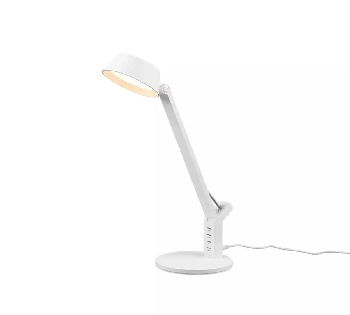 Kaunis Trio Ava led työpöydänvalaisin on varustettu useilla käytännöllisillä ominaisuuksilla! Pöytävalaisimessa myös USB-lataus! Trio Ava led pöytävalaisin sopii erinomaisesti koulupöytien ja työpöytien valaisimeksi. Sirokokoinen valaisin ei vie paljoa tilaa, mutta se valaisee 600 lumenin tehollaan todella hyvin ja näyttävästi! Tehokkuuden lisäksi Trio Ava led pöytävalaisimessa on myös integroitu himmennin, joten sopivan valotehon voi valita juuri tilanteeseen sopivaksi. Myös värilämpötila on säädettävissä tilaan ja tilanteeseen sopivaksi 3000K, 4000K ja 6500K välillä. Huoneeseen saa siis haluamansa mukaan, lämmintä, kylmää tai neutraalia valoa. Lisänä näihin ominaisuuksiin valaisimessa on myös muistitoiminto, jonka avulla valaisin muistaa valitut asetukset viime kerralta, kun se laitetaan päälle. Pöytävalaisimen monimuotoisuutta lisää myös valaisimen varressa oleva USB-liitäntä, jonka avulla voi helposti ladata puhelinta samalla kun työskentelee tai tekee koulutehtäviä. Tilaa nyt valkoinen Trion Ava led pöytävalaisin verkkokaupastamme ja toimitamme sen halutessasi vaikkapa lähimpään postiisi! Tekniset tiedot: Väri: valkoinen Materiaali: muovi Painikkeet sijaitsevat valaisimen varressa Valaisimessa myös USB-liitäntä lataamista varten 1 x SMD LED, 5,2 W, 1 x 600 lm, 3000+4000+6500K 5 vuoden led takuu! Käyttöjännite 230V ~ 50Hz Suojausluokka 2 IP luokitus: IP 20 Käyttötarkoitus: sisäkäyttöön Pöytävalaisimen mitat: Leveys 17 cm, syvyys 30 cm ja korkeus 40 cm Paino 0,98 kg Piirroskuva & käyttöohjeet: käyttöohjeet piirroskuva takuu