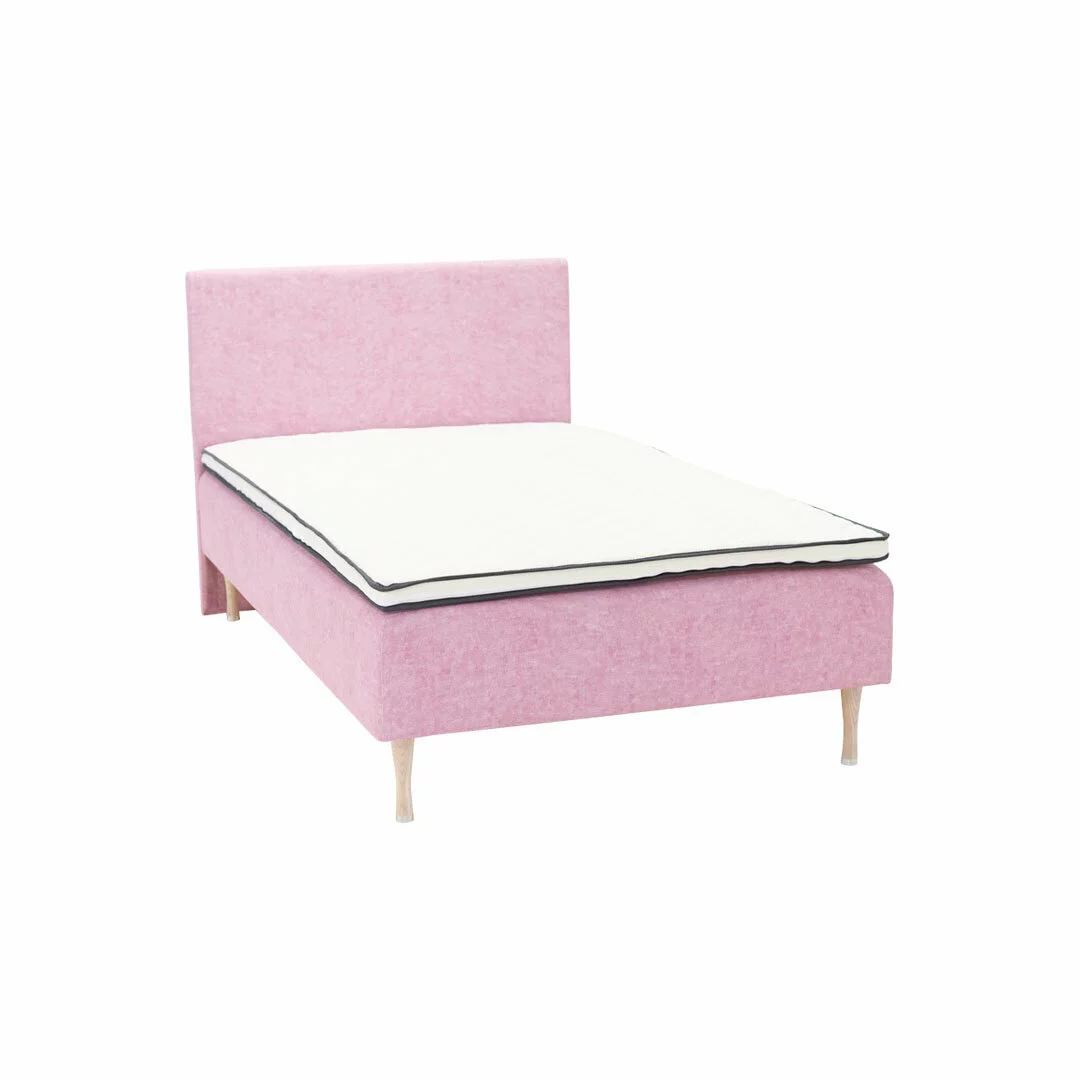 Upean vaaleanpunainen ja sopivan jämäkkä Unissa Pink runkopatjasänky edullisesti verkkokaupastamme – kotiinkuljetus alkaen 0 €! Unissa Pink runkopatja on verhoiltu upealla vaaleanpunaisella huonekalukankaalla, joka on helppo pitää puhtaana. Ulkoasultaan runkopatjapaketti on muutenkin siisti sekä tyylikäs. Sänky on kooltaan 120 cm leveä, joten se on helppo sijoittaa hieman pienempäänkin makuuhuoneeseen, johon halutaan kuitenkin tavallista leveämpi vuode. Nukkumamukavuudeltaan Unissa Pink runkopatja on sopivan jämäkkä. Patjassa on jämäkät pussijouset, jotka myötäilevät kehoa painon ja asennon mukaan. Jouset myös joustavat pussi kerrallaan, joten patja tukee selkärankaa ja mahdollistaa sen suorana pysymisen. Sängyn päälle istuttaessa patja saattaa tuntua pehmeältä, kun paino kuormittuu vain pienelle alueelle. Kun runkopatjan päälle mennään makaamaan, se tuntuu jämäkältä painon jakautuessa koko alueelle. Runkopatjan alla on vaaleat, pikarimaiset ja puiset jalat. Pikarimuoto antaa sängylle lisää tyylikkyyttä sekä ilmavuutta. Korkeiden jalkojen ansiosta sängyn alta pääsee helposti myös siivoamaan. Unissa Pink runkopatjan tilaukseen voi lisätä myös upean sängynpäädyn, joka on verhoiltu samanlaisella vaaleanpunaisella kankaalla kuin runkopatjakin. Sängynpäädyllä sängylle saadaan entistä enemmän näyttävyyttä, ja samalla pääty suojaa seinää sekä tapettia. Runkopatjan saa tilattua myös ilman sängynpäätyä, mikäli niin haluaa. Runkopatjapaketin hintaan kuuluu yksi 120 cm leveä runkopatja ja puiset pikarimaiset jalat. Lisäksi pakettiin voi valita myös petauspatjan, jolla voidaan vaikuttaa sängyn jämäkkyyteen. Valinnalla voidaan nimittäin saada sänkyyn lisää jämäkkyyttä tai pintapehmeyttä oman maun mukaan. Runkopatja on mahdollista tilata myös ilman petauspatjaa. Jos tuotteelle ei ole valittu petauspatjaa vetovalikosta, on näkyvissä oleva hinta ilman petauspatjaa. Tekniset tiedot: Runkopatja on verhoiltu laadukkaalla vaaleanpunaisella Morgan 66 -kankaalla Runkopatjasängyn runko on valmistettu puusta/vanerista Runkopatjassa koteloitu pussijousitus, joka myötäilee kehoa pussi kerrallaan tukien selkää paremmin Jämäköiden pussijousien määrän, paksuuden ja tiheyden mukaan jämäkkä kovuus Runkopatjan jouset on koteloitu vaahtomuovilla, jonka ansiosta sänky näyttää siistimmältä ja verhoilukangas ei hankaudu jousien liikkeiden johdosta, mikä tekee sängystä pitkäikäisemmän Verhoiltu laadukkaalla ja likaa hylkivällä huonekalukankaalla Saatavana tilauksesta myös muilla kankailla ja väreillä verhoiltuna! Hintaan sisältyy 120 cm runkopatja, pikarimaiset puiset jalat ja valitsemasi petauspatja. Mikäli tuotteelle ei ole valittuna petauspatjaa vetovalikosta, on näkyvissä oleva hinta ilman petauspatjaa. Suosittelemme käyttämään petauspatjan päällä petauspatjansuojaa. Tällöin petauspatjan päällinen pysyy puhtaana eikä sitä tarvitse pestä koneessa ja pääset itse helpommalla pesemällä koneessa vain petauspatjansuojan. Suoja myös pidentää petauspatjan käyttöikää! Jäykkyys: Jäykkyys: Medium. Jämäkkä vaihtoehto. Runkopatja on riittävän jämäkkä tukemaan selkärankaa makaamisen aikana siten, että ranka pysyy suorana. Pintapehmeyteen voi vaikuttaa valitsemalla esimerkiksi pehmeän Pilvi Erx40 petauspatjan. Mikäli haluaa jämäkämmän viimeistelyn, suosittelemme valitsemaan esimerkiksi Aamu HR35 petauspatjan tai lämpöön ja painoon reagoivan Max viscoelastisen petauspatjan. Petauspatjavaihtoehdot: Pilvi Erx40 stylex vaahtomuovinen petauspatja. Lisää pintapehmeyttä Pilvi petauspatjalla. Pilvi Erx40 petauspatja on valmistettu Stylex erikoisvaahtomuovista, joka tekee petauspatjasta pitkäikäisemmän ja kimmoisamman. Pilvi petauspatjassa on pehmeämpi profiloitu puoli ja jämäkämpi sileä puoli. Petauspatja on verhoiltu siistillä vaalealla kankaalla. Aamu HR35 erikoisvaahtomuovinen petauspatja. Lisää pintajämäkkyyttä Aamu petauspatjalla. Aamu HR35 petauspatja on valmistettu tavallista vaahtomuovia kimmoisammasta ja pitkäikäisemmästä vaahtomuovista. Napakka ja paksu Aamu petauspatja tuo sopivasti lisäjämäkkyyttä sänkyyn. Petauspatja on verhoiltu siistillä vaalealla kankaalla. Max viscoelastinen petauspatja mukailee kehoa sen painon ja lämmön mukaan. Tuo pintaan lisää napakkuutta kuitenkin kehoa miellyttävästi mukaillen. Max petauspatja muotoutuu aina nukkujan lämpöön ja painoon sopeutuen. Verhoiltu siistillä valkoisella kankaalla. Aura 7 cm vaahtomuovipetauspatja. Muhkea vaahtomuovipetauspatja, jonka kummallakin puolella reilu kerros vanua muhkeutta ja pehmeyttä tuomassa. Tuo lisää pintapehmeyttä sänkyyn. Verhoiltu siistillä valkoisella kankaalla. Mix vaahtomuovipetauspatja. Ohut vaahtomuovista valmistettu sileäpintainen petauspatja. Tuo vain hieman pintapehmeyttä viimeistellen sängyn. Verhoiltu vaalealla kankaalla ja tummat terenauhat reunoissa. Mitat: Korkeus: 46 cm (ilman petauspatjaa) Patjakoko: 120 x 200 cm Sängyn jalkojen korkeus: 20 cm Takuu: Takuu kattaa valmistusvirheistä johtuvan jousiston tai rungon rikkoutumisen. Takuu ei koske runkopatjasängyn jousiston normaalia kulumista. Laatu: Unissa Pink runkopatjassa on tukeva puinen runko ja kestävä sekä tiheä pussijousisto, joka tekee runkopatjapaketista laadukkaan. Myös runkopatjassa käytetyt kankaat ovat kestäviä ja laadukkaita. Toimitus: Runkopatjasänky toimitetaan jalat irrallaan. Jalat on helppo kiinnittää alta kiertämällä runkoon kiinni ilman työkaluja.