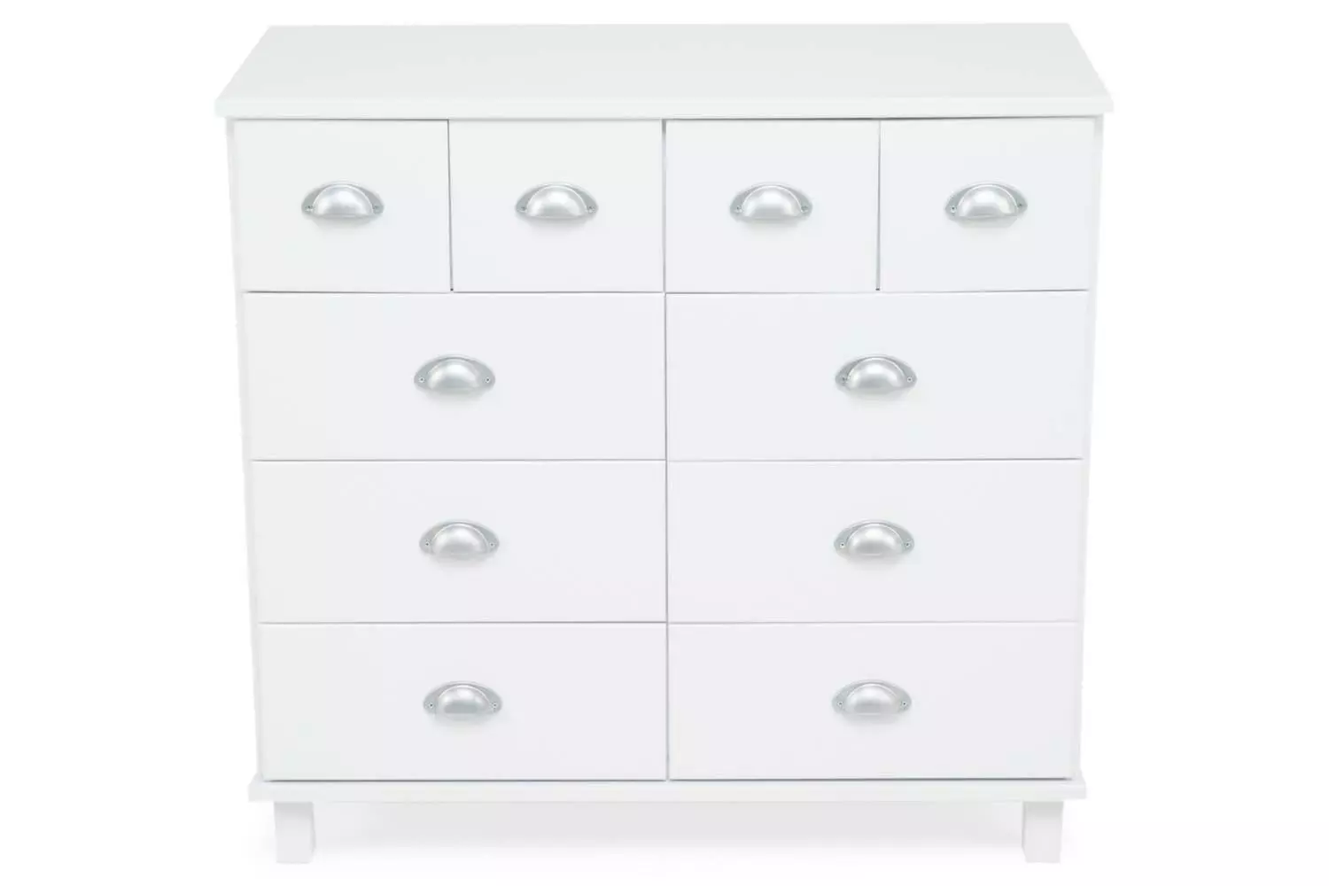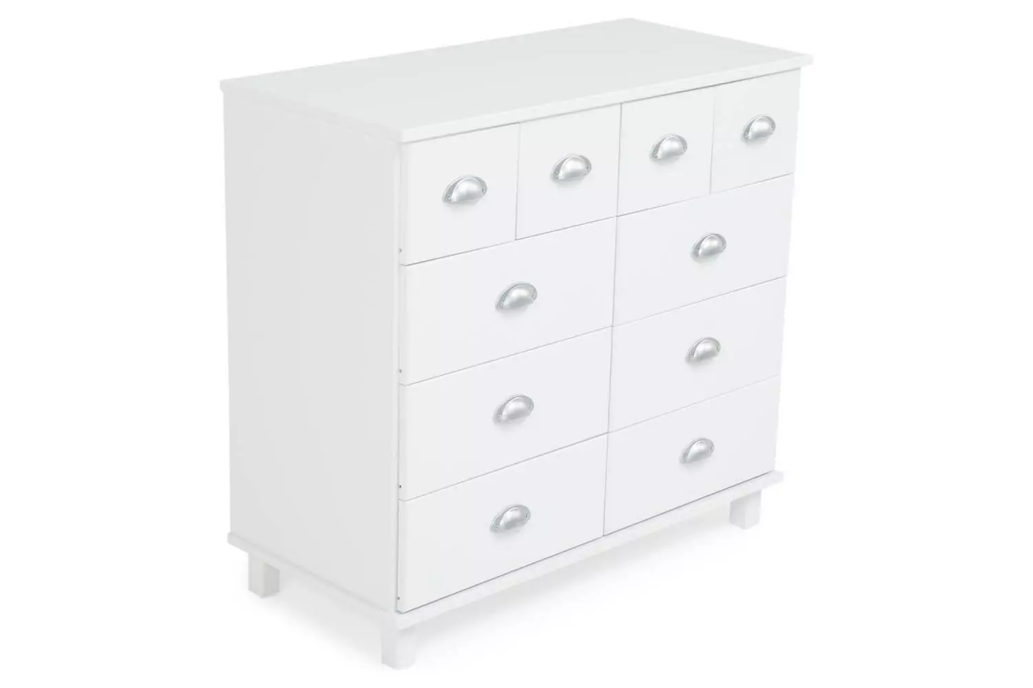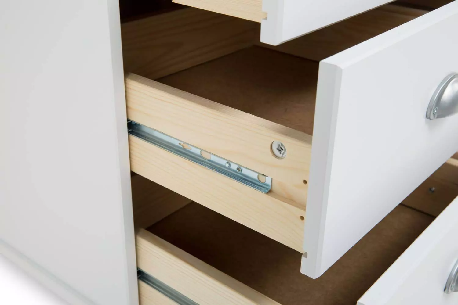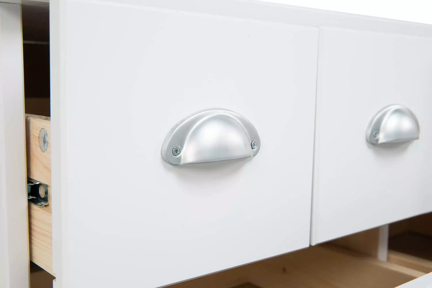 Laadukas ja kestävä Wilma lipasto on kauniisti viimeistelty ja tilavan kokoinen valkoinen lipasto! Wilma sarjan tuotteet, kuten tämä lipastokin ovat yksinkertaisen kauniita ja perinteisen mallisia huonekaluja. Wilma lipastossa on kahdeksan tilavaa laatikkoa, joissa kaikilla on laadukkaat metallikiskot. Ylimmät laatikot on tehty ulospäin pienempien laatikkojen näköisiksi, vaikka oikeasti kahden pienen laatikon edustan takaa paljastuu yhtenäinen laatikko. Lipaston käytännöllisyyttä lisäävät myös sen korkeat jalat, joiden ansiosta lipaston alta moppaaminen ja imurointi käy vaivatta. Tilaa nyt laadukas ja edullinen Wilma lipasto verkkokaupastamme, ja kotiinkuljetamme sen ulko-ovellesi aina edulliseen hintaan! Tekniset tiedot: Väri: valkoinen Valmistettu MDF-levystä Hopeanväriset vetimet Laatikoissa metallikiskot Jalat koivua Toimitetaan osina Lipaston mitat: Lipaston mitat: leveys: 87 cm, syvyys 41 cm ja korkeus 82 cm Jalkojen korkeus 8 cm Pienen laatikon sisäleveys 15,4 cm Pienen laatikon sisäsyvyys 34,3 cm Pienen laatikon sisäkorkeus 8,7 cm laatikon reunaan ja 15,2 cm laatikon edustan yläreunaan Suuren laatikon sisäleveys 36,5 cm Suuren laatikon sisäsyvyys 34,3 cm Suuren laatikon sisäkorkeus 8,7 cm laatikon reunaan ja 15,2 cm laatikon edustan yläreunaan